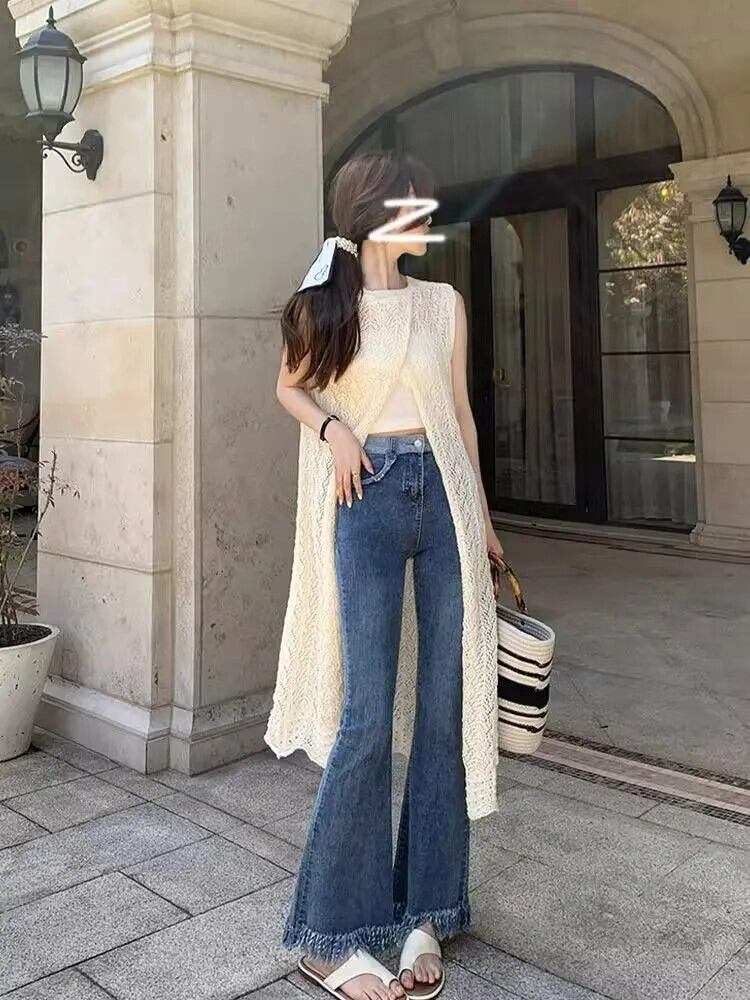 甘いホットガールニットスプリットドレス夏レイヤード休暇スタイルロングカバーアップドレス レッド 大人ガーリー スウィート キュート カジュアル サマー 夏物