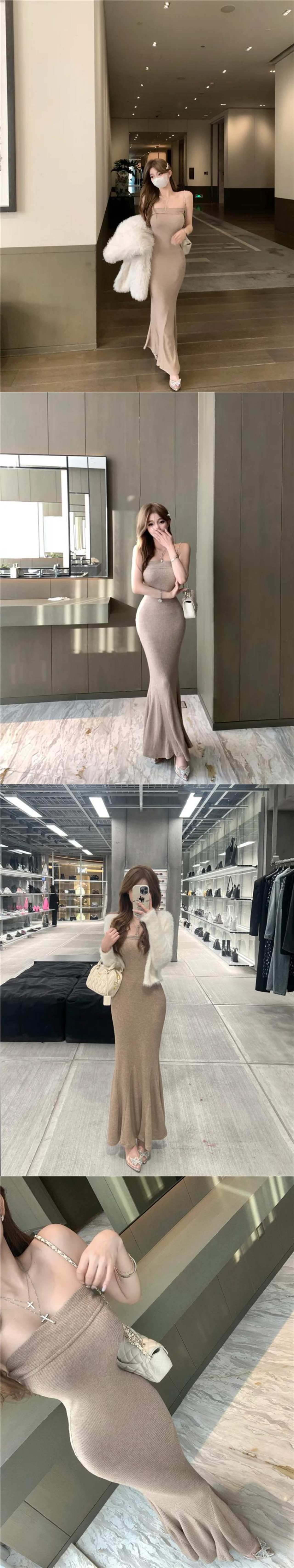 甘いホットガールセクシー背中開いたストラップレスドレス夏ニット尻ラップマーメイドロングドレス 大人ガーリー スウィート キュート カジュアル サマー 夏物