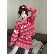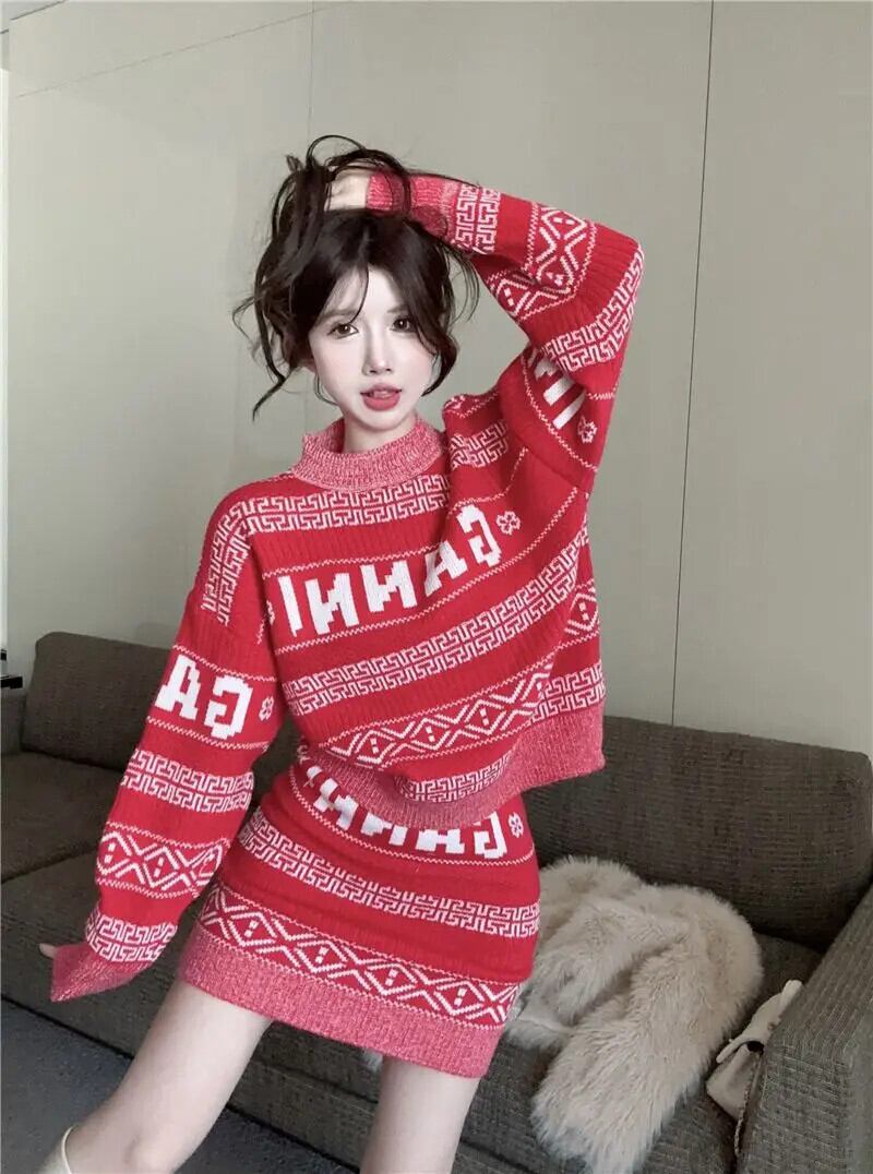 スイートホットガールスーツ秋/冬ハーフネックルーズセーターウエストミニスカートツーピースセット 大人ガーリー スウィート キュート カジュアル オータム 秋物 ウィンター 冬物
