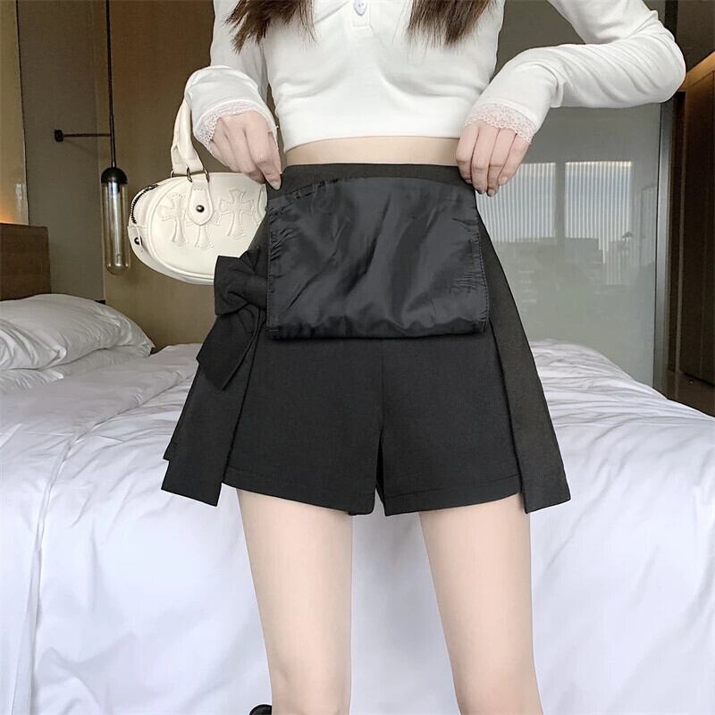 甘いホットガールボウかわいいミニスカート春/夏ウエスト分割ラップヒップショーツスカート リボン 大人ガーリー スウィート キュート カジュアル スプリング 春物 サマー 夏物 ブルマー