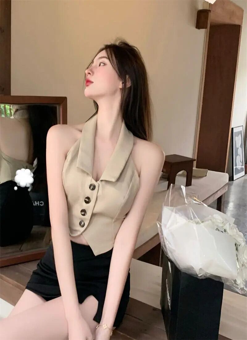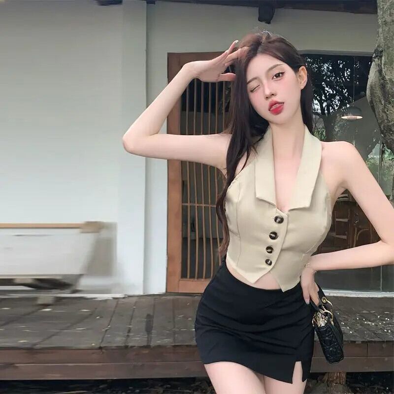 純粋セクシーホットガールスーツ夏ネックホルタースリムタンクトップウエストミニスカートツーピースセット サマー 夏物