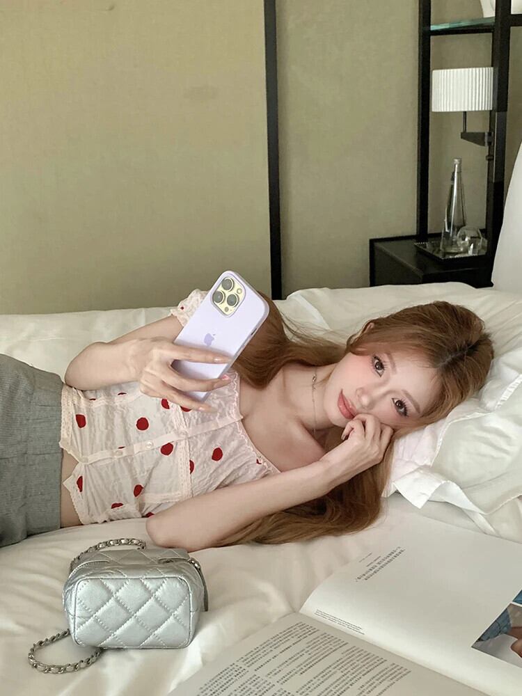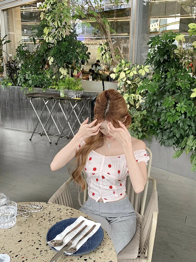 スウィートガール水玉レース V ネック Tシャツ夏スリムフィットオフショルダー半袖トップファッション 大人ガーリー キュート カジュアル サマー 夏物 Vネック