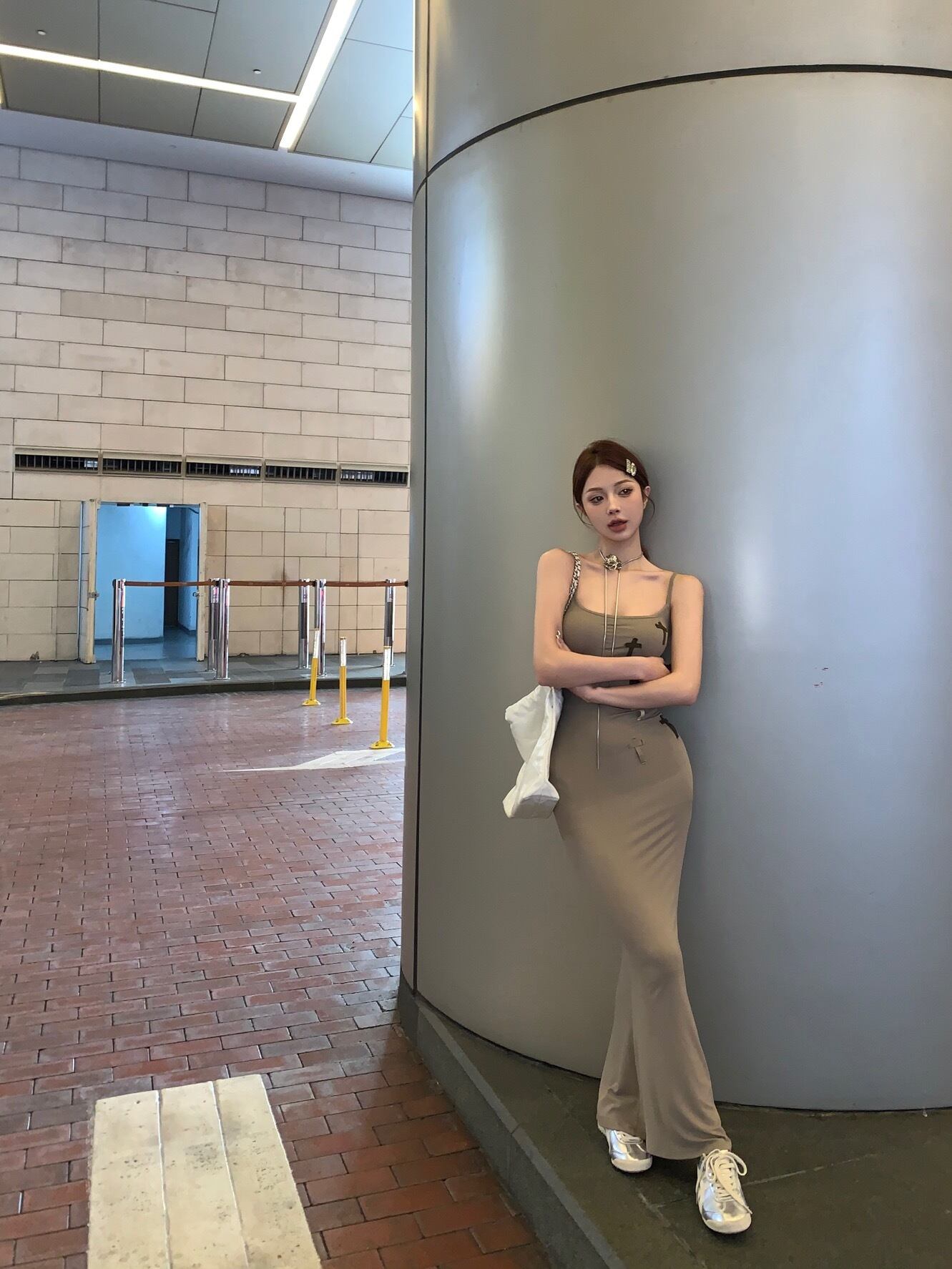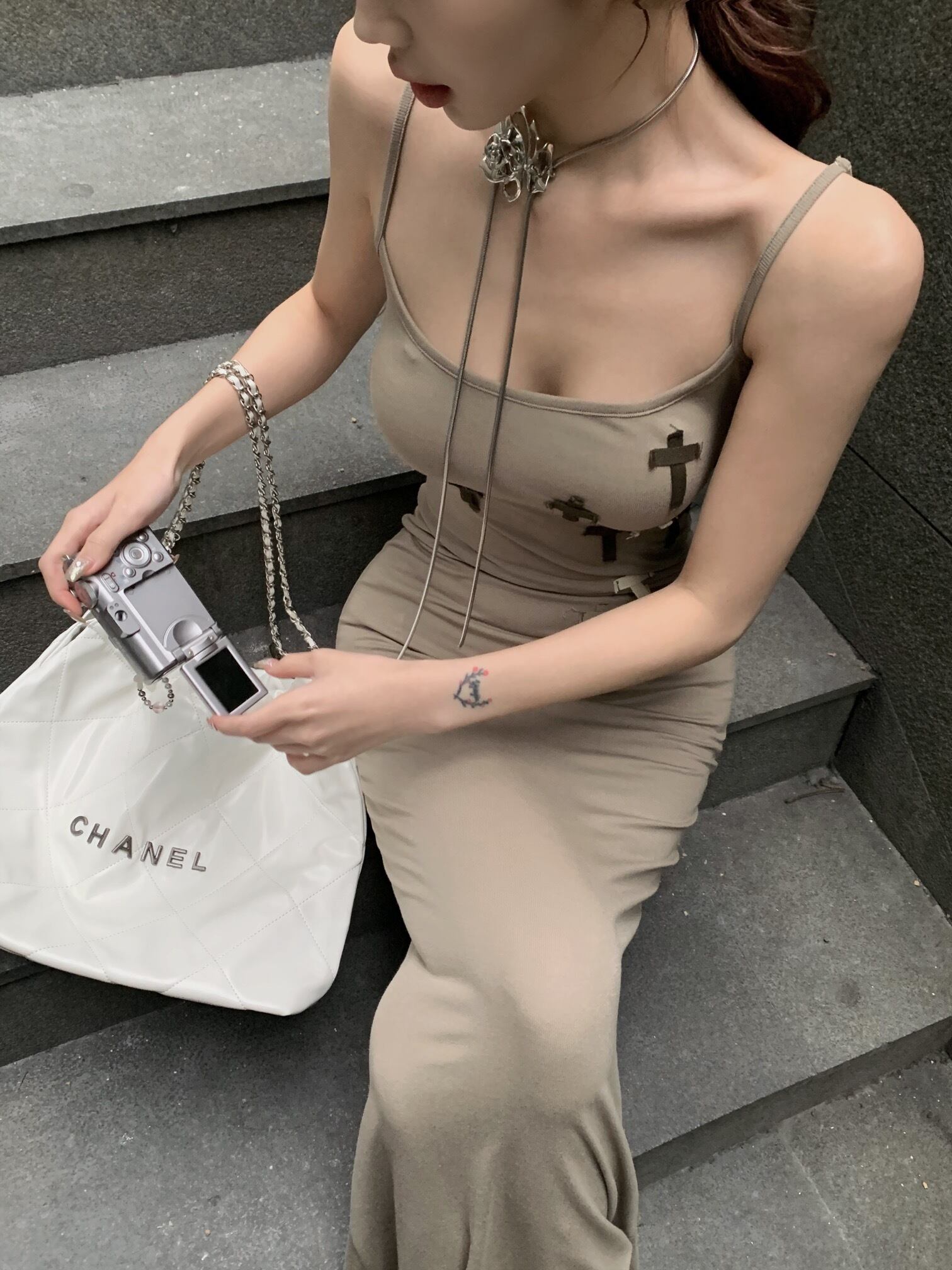 甘いホットガール純粋セクシーストラップドレス春/夏パッチスリムフィットラップヒップロングドレス 大人ガーリー スウィート キュート カジュアル スプリング 春物 サマー 夏物 ピュア