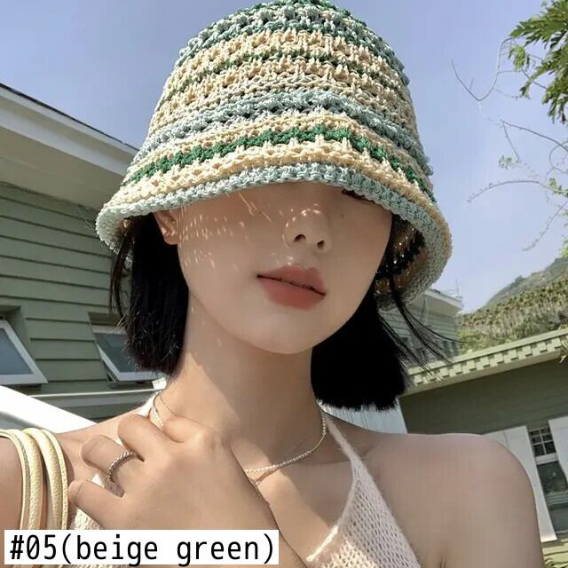 甘いホットガールカラフルわら織バケットハット夏麦わら帽子ビーチシェーディング帽子トレンディアクセサリー 大人ガーリー スウィート キュート カジュアル サマー 夏物