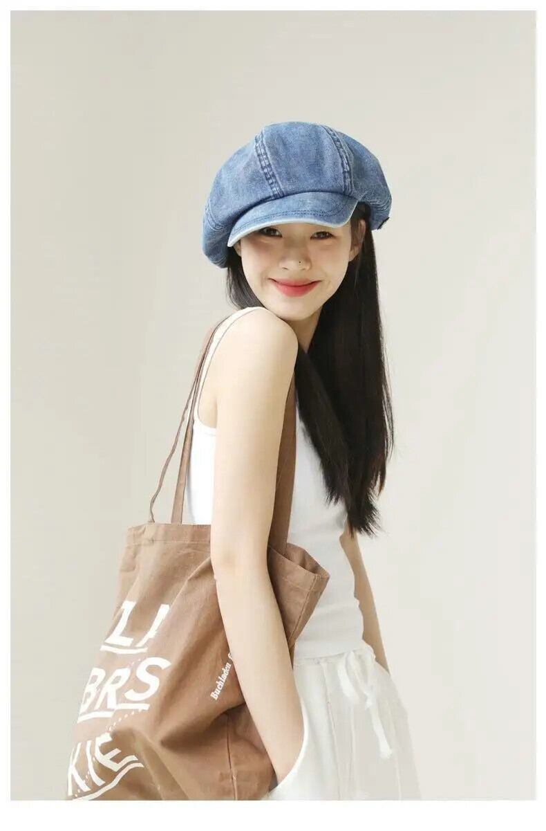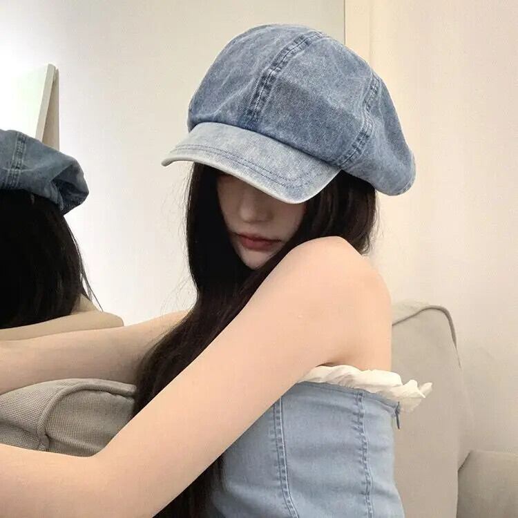 ese 甘いホットガールデニムブルー八角形帽子春ビッグヘッドウエストクラウドバイザーベレー帽トレンディアクセサリー 大人ガーリー スウィート キュート カジュアル スプリング 春物 ベレット ヘアアクセサリー