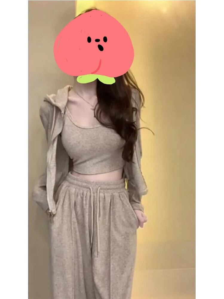 スポーツ スタイル スーツ レディース 春フード付きショート カーディガン ベスト ウエスト ワイドレッグ パンツ 3 点セット スプリング 春物 ワイドパンツ