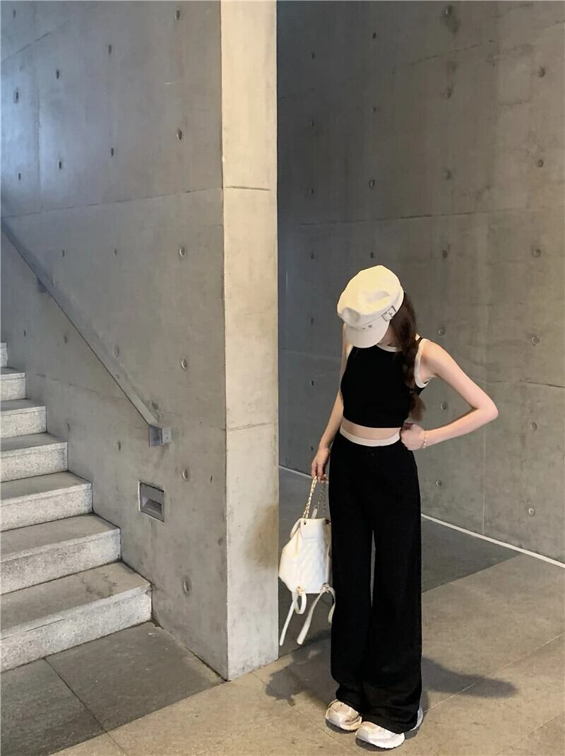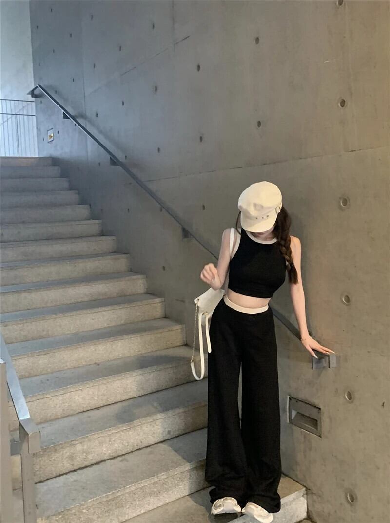 スイートホットガールスーツ夏スリムフィットショートベストウエストドレープワイドレッグパンツツーピースセット 大人ガーリー スウィート キュート カジュアル サマー 夏物 ワイドパンツ