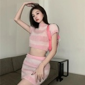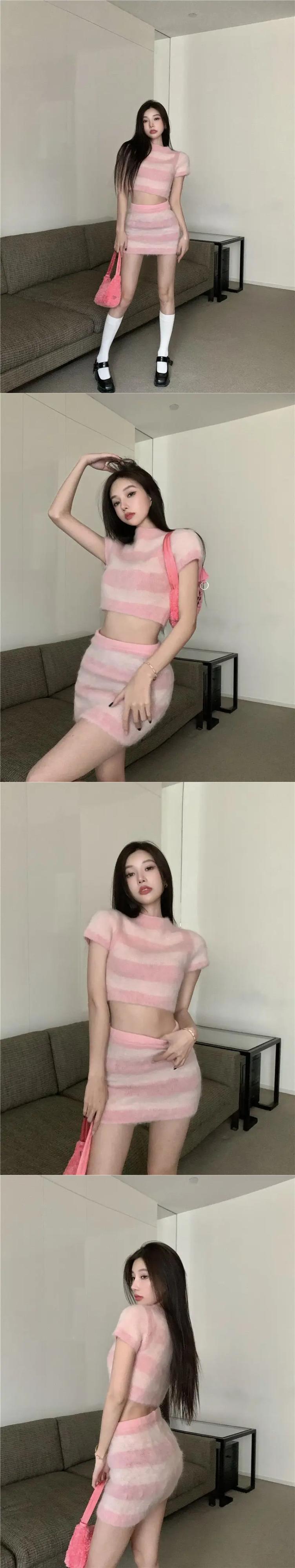 Sweet Girl 純粋セクシースーツ春夏ストライプニットトップラップヒップミニスカート 2 点セット 大人ガーリー スウィート キュート カジュアル スプリング 春物 サマー 夏物 ピュア