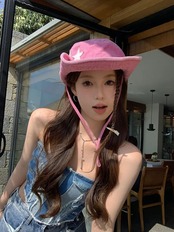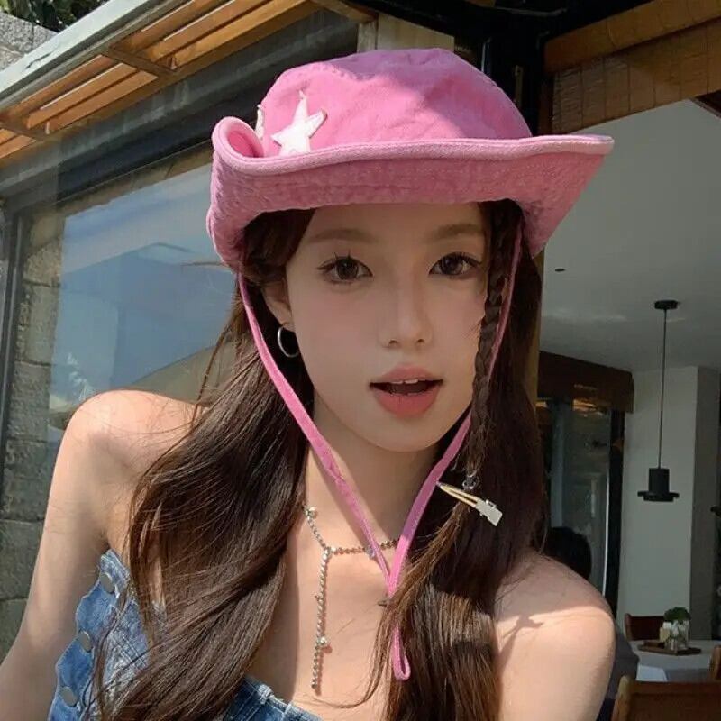 甘いホットガールガール登山帽子スターピンク春旅行西洋カウボーイハットトレンディアクセサリー 大人ガーリー スウィート キュート カジュアル スプリング 春物
