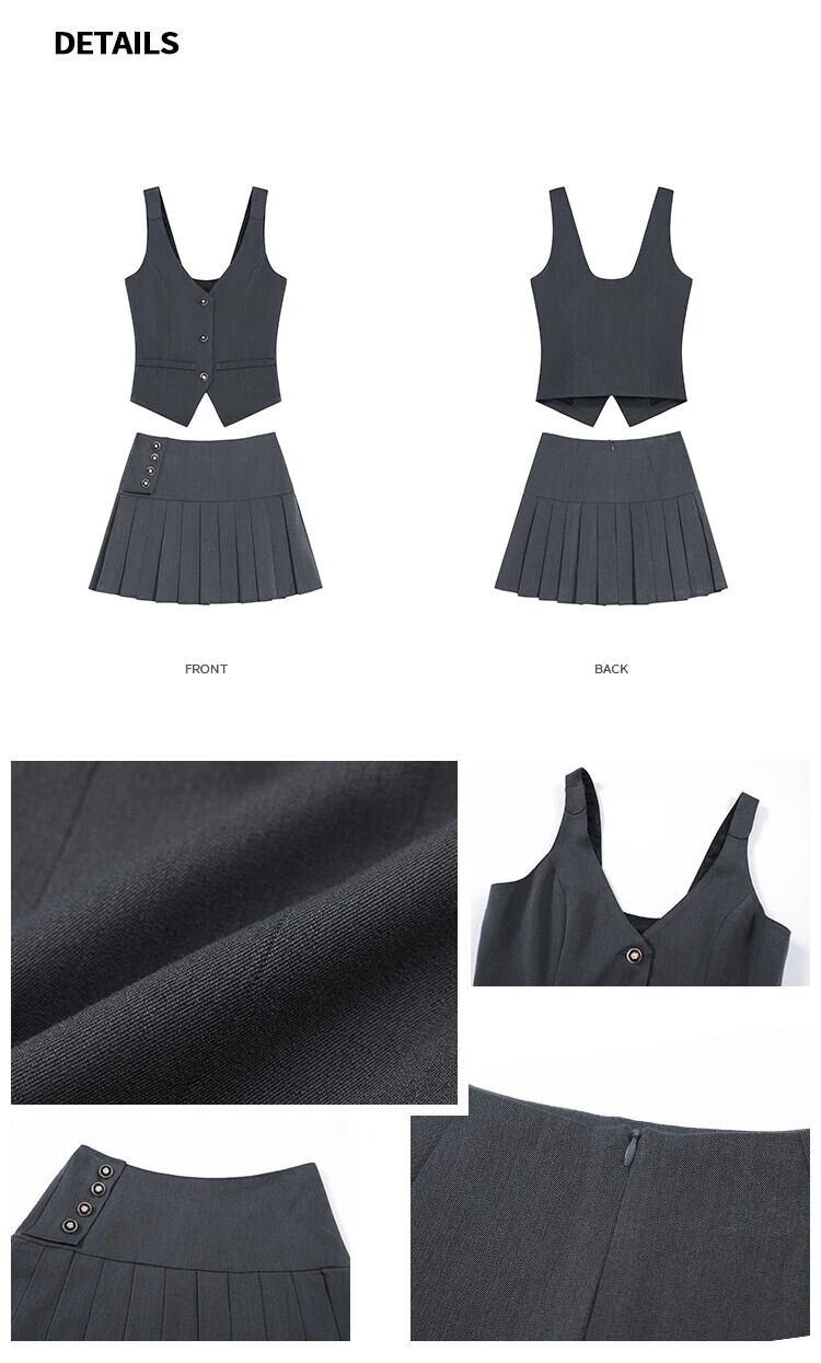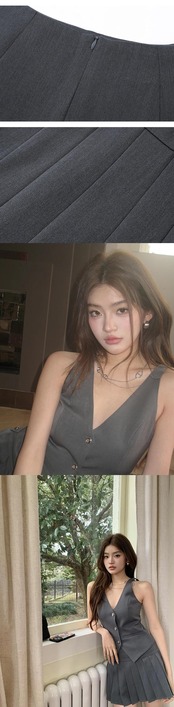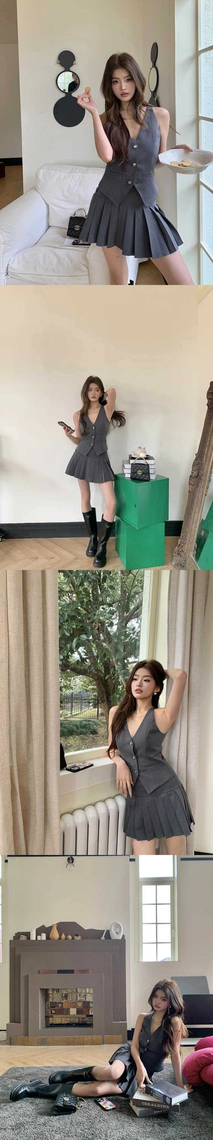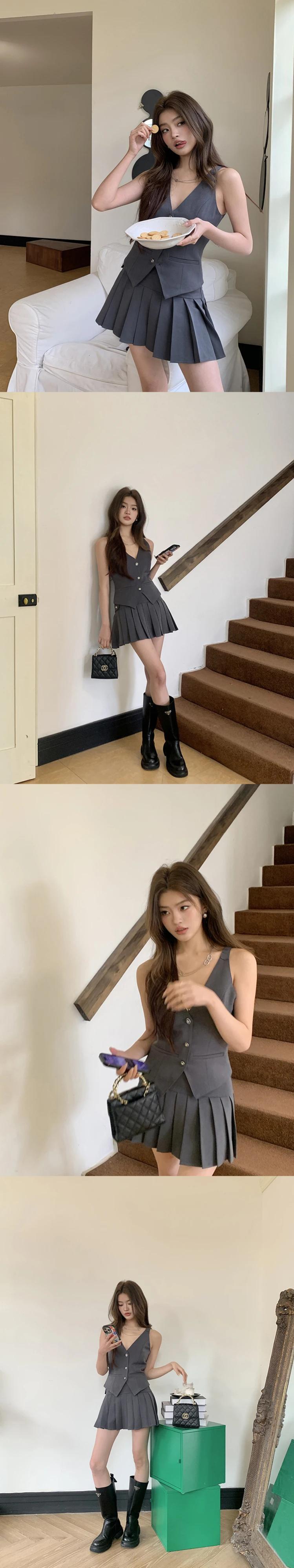 甘いホットガールプレッピースタイルスーツ夏 V ネックベストウエストミニプリーツスカート 2 点セット 大人ガーリー スウィート キュート カジュアル サマー 夏物 Vネック