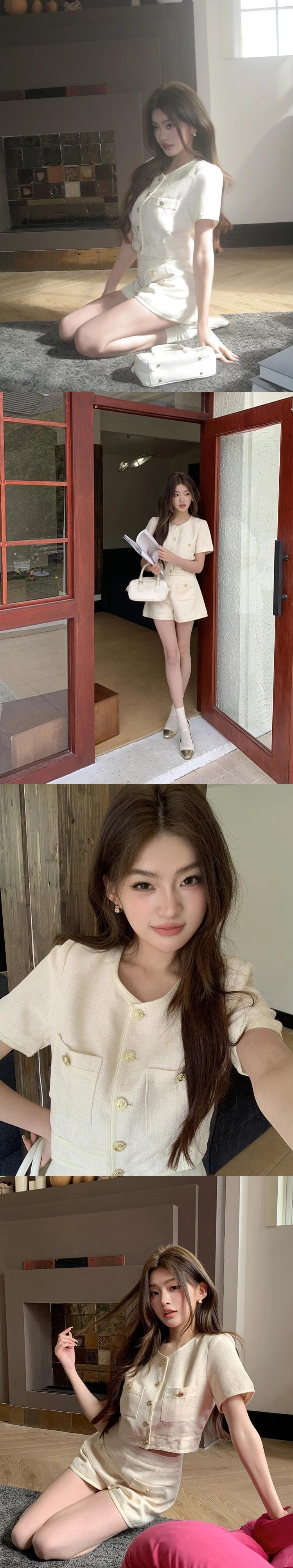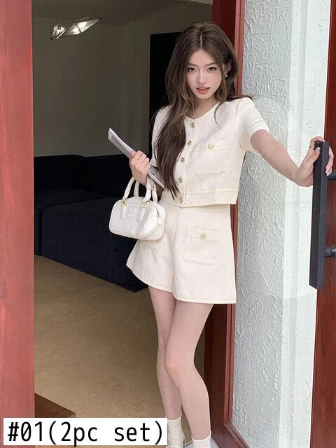 スイートホットガールスーツ夏 O ネック半袖ジャケットウエストショーツ 2 点セット 大人ガーリー スウィート キュート カジュアル サマー 夏物 ブルマー Oネック
