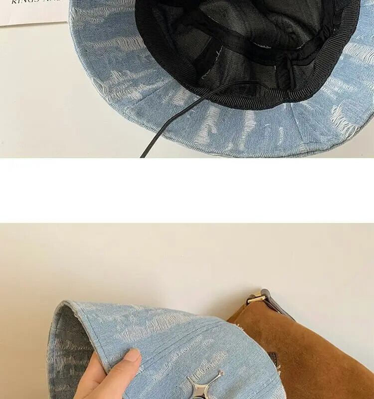 甘いホットガールウォッシュオールドデニムバケットハット春金属装飾 Perated バケットハットトレンディアクセサリー 帽子 大人ガーリー スウィート キュート カジュアル スプリング 春物
