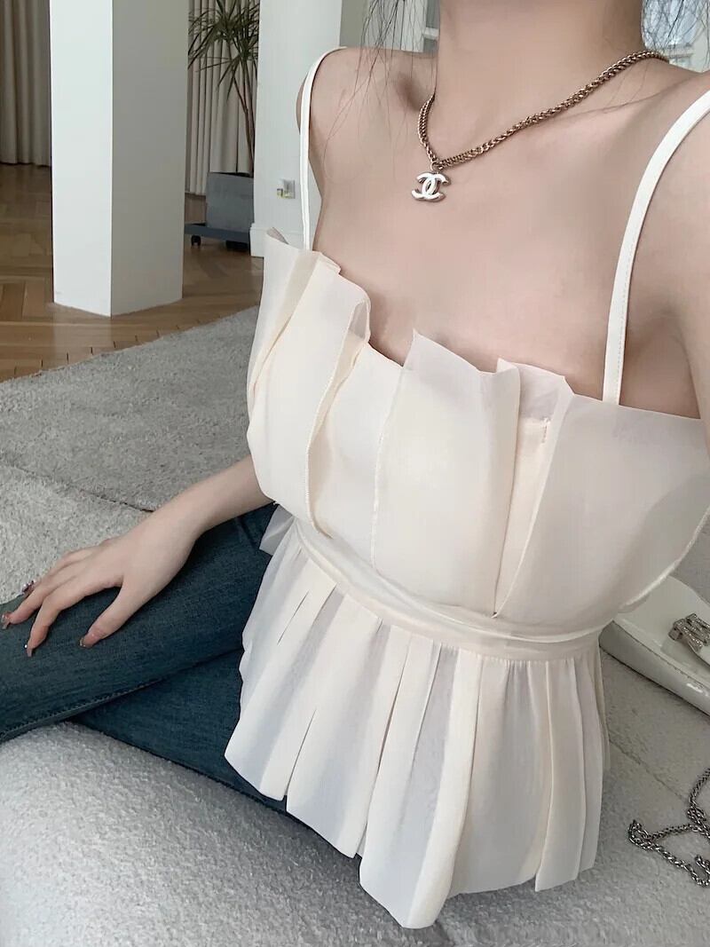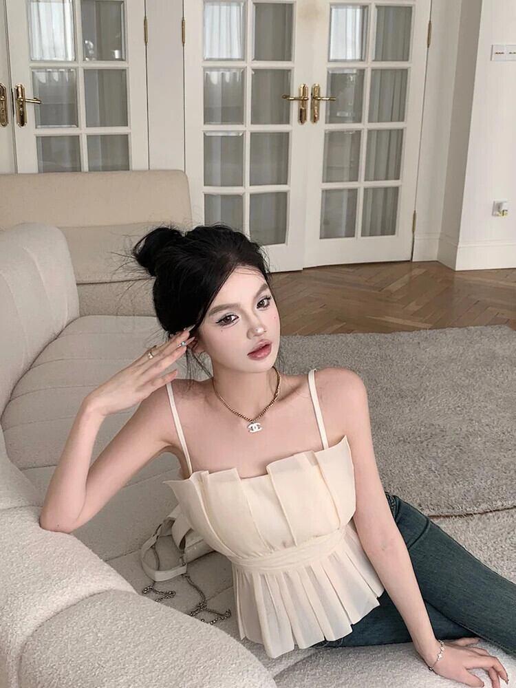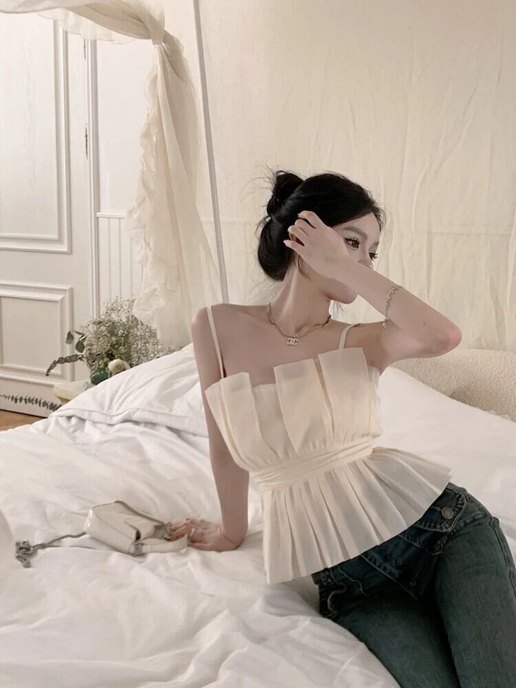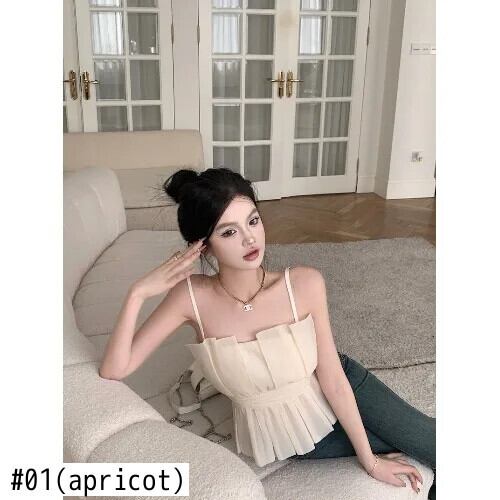 Sweet Hot Girl アプリコット メッシュ セクシー ストラップ タンクトップ レディース 春 ショート スリム フィット 胸パッド付き キャミソール 大人ガーリー スウィート キュート カジュアル スプリング 春物