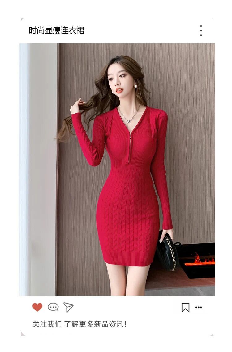 甘いホットガールソリッド弾性ニット V ネックドレス春ツイストウエストスリムラップヒップドレス エラスティック 伸縮 大人ガーリー スウィート キュート カジュアル スプリング 春物 Vネック ソリッドカラー