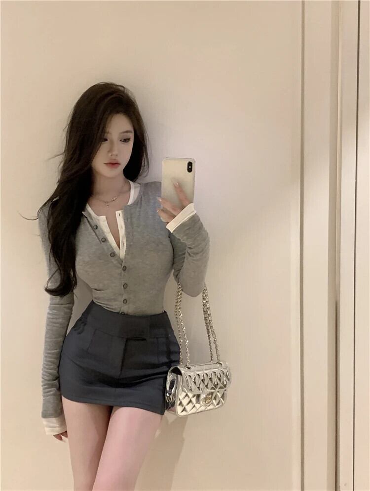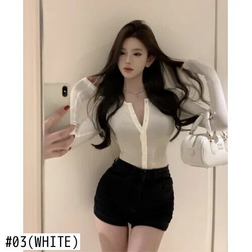 甘いホットガールパッチワークカラーコントラストジャンプスーツ Tシャツ春 O ネックシングルブレストスリムフィットボトリングトップ 大人ガーリー スウィート キュート カジュアル スプリング 春物 Oネック