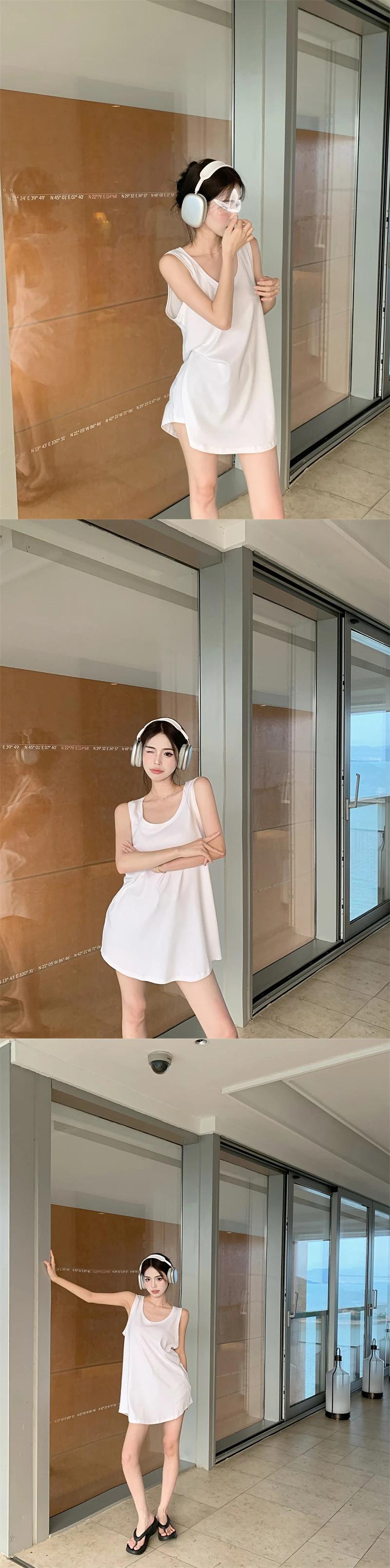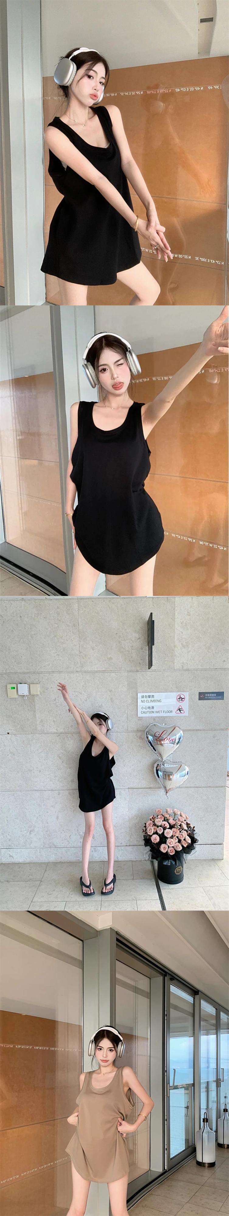 Sweet Hot Girl ノースリーブ Tシャツ レディース 春 ルーズフィット U ネック ミッドレングス タンクトップ 大人ガーリー スウィート キュート カジュアル スプリング 春物