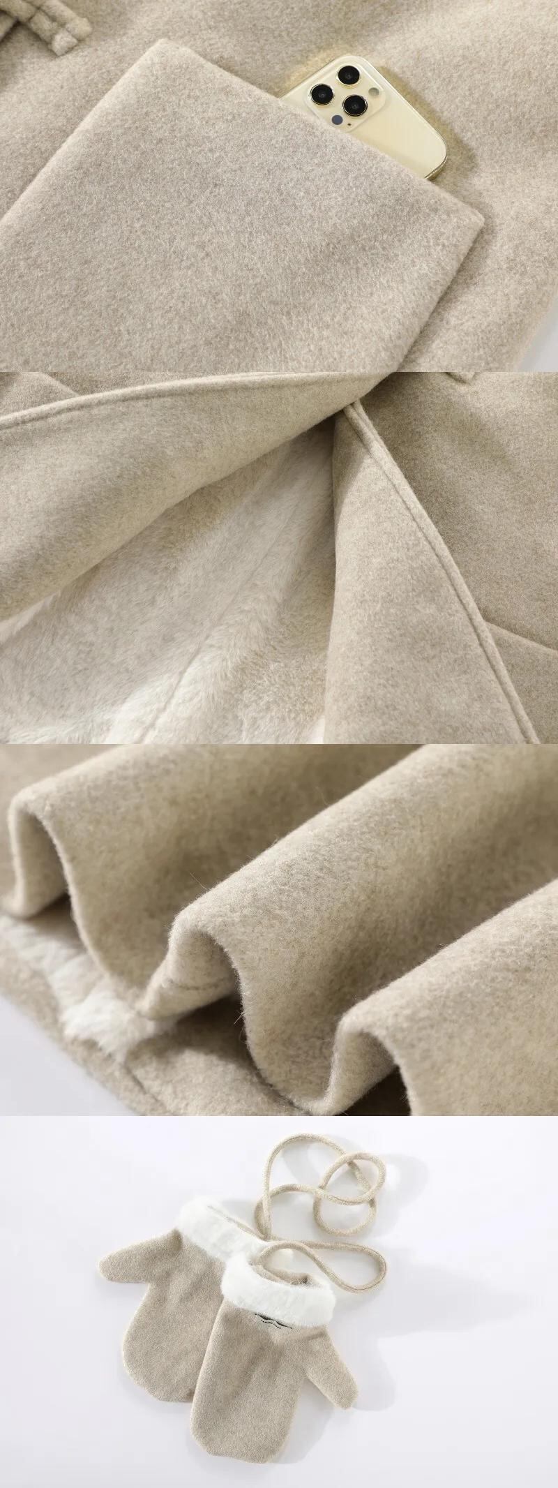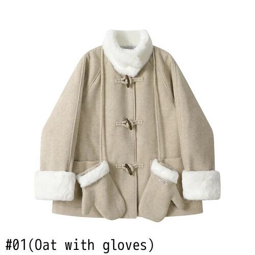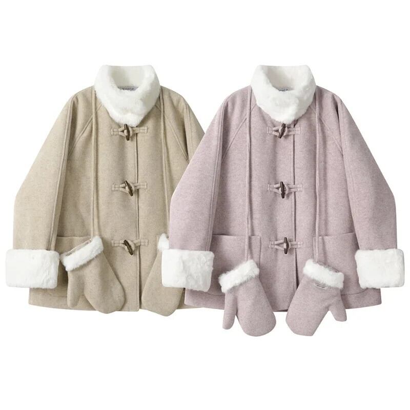 スイートホットガールレッドウールジャケット冬肥厚ホーンボタンスタンドカラーコート手袋 大人ガーリー スウィート キュート カジュアル ウィンター 冬物