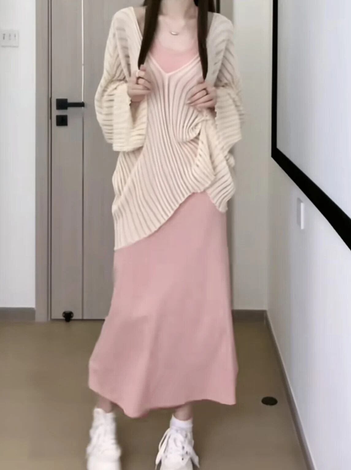 甘いホットガールスーツ春夏トップ Tシャツホルターネックオフショルダードレス 2 点セット 大人ガーリー スウィート キュート カジュアル スプリング 春物 サマー 夏物