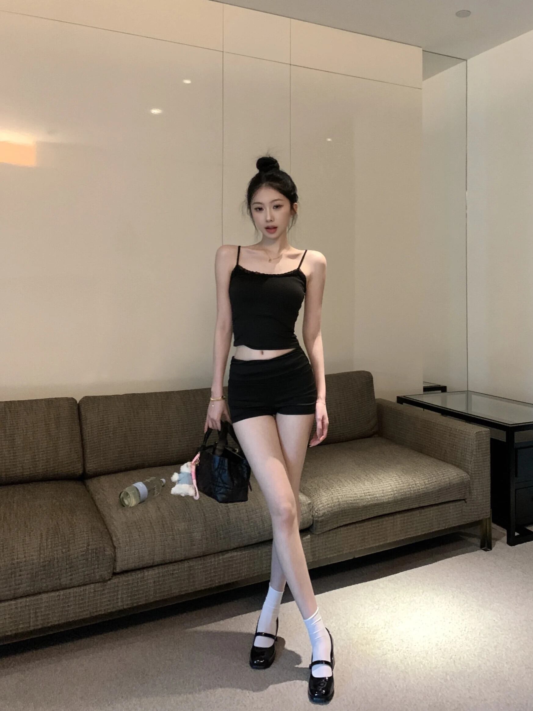 甘いホットガールセクシースーツ春スリムフィットストラップベストウエストストレートレッグショーツ 2 点セット 大人ガーリー スウィート キュート カジュアル スプリング 春物 ブルマー