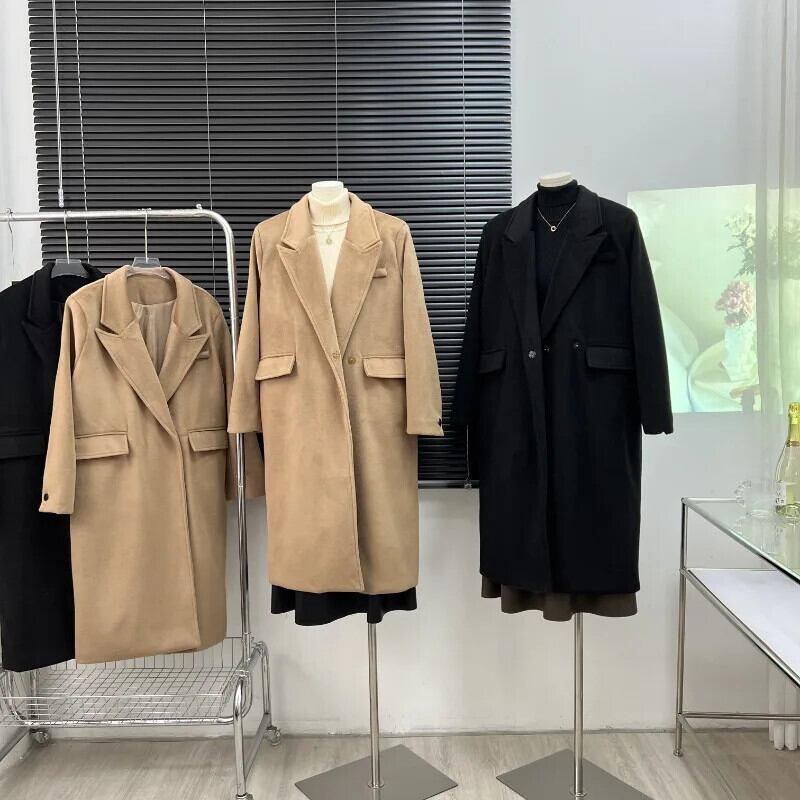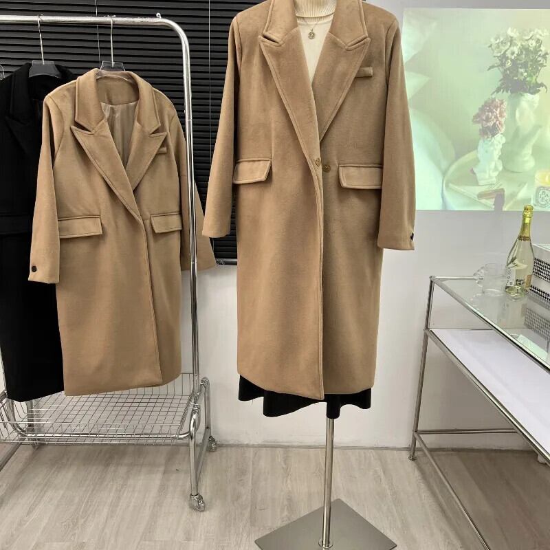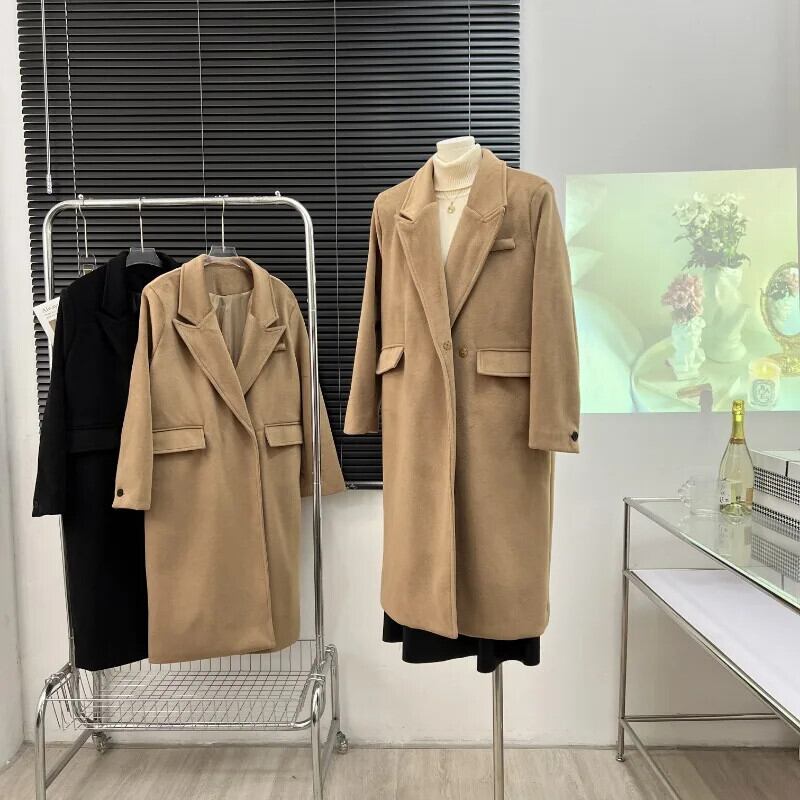 甘いホットガールウールブレンドコート冬ターンダウン襟ルーズ長袖ミッドレングスコート ロング 大人ガーリー スウィート キュート カジュアル ウィンター 冬物
