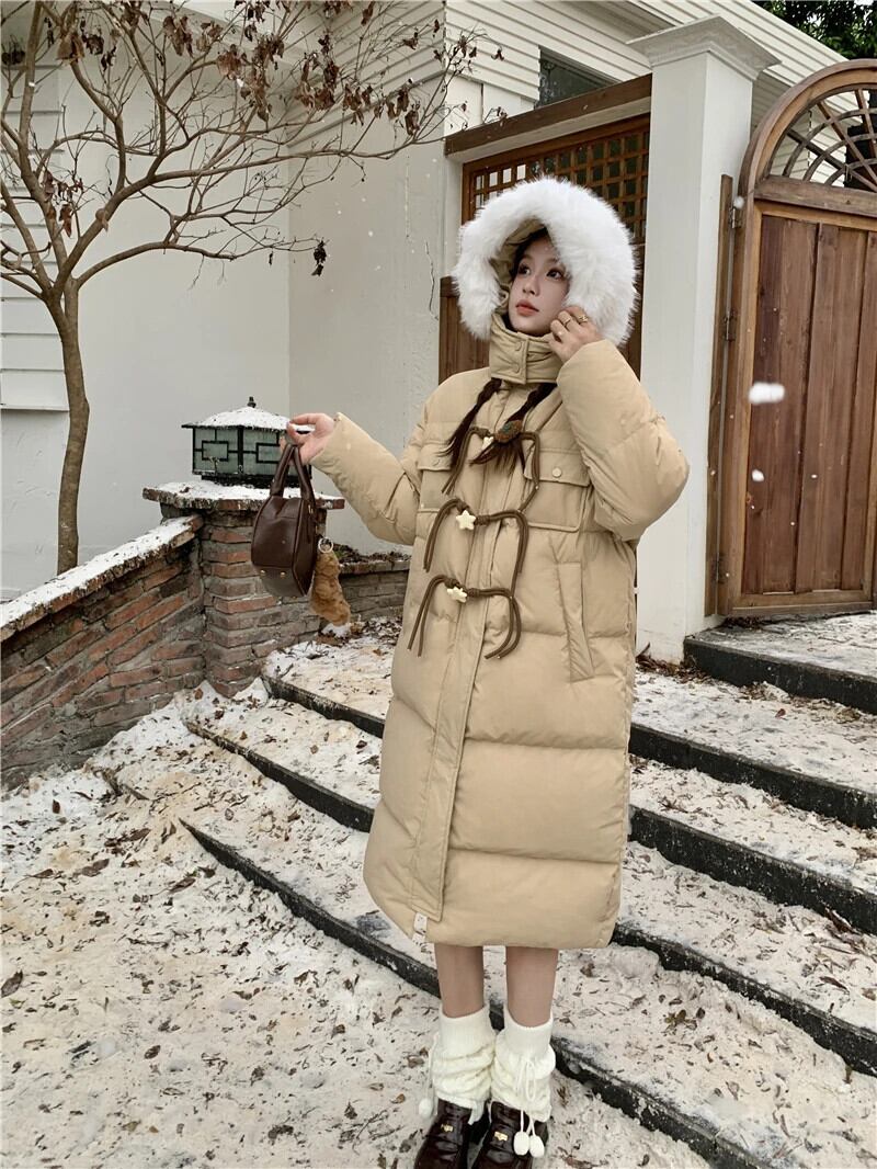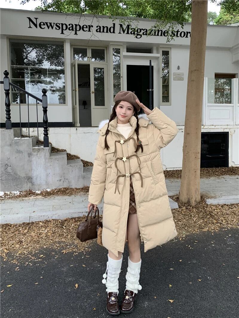 甘いホットガールぬいぐるみパッチワークフード付きコットンジャケット冬ルーズ長袖コート ロング 大人ガーリー スウィート キュート カジュアル ウィンター 冬物