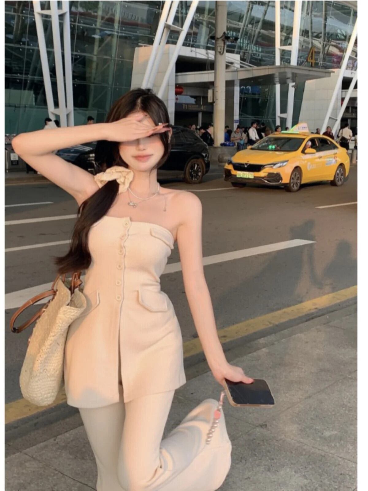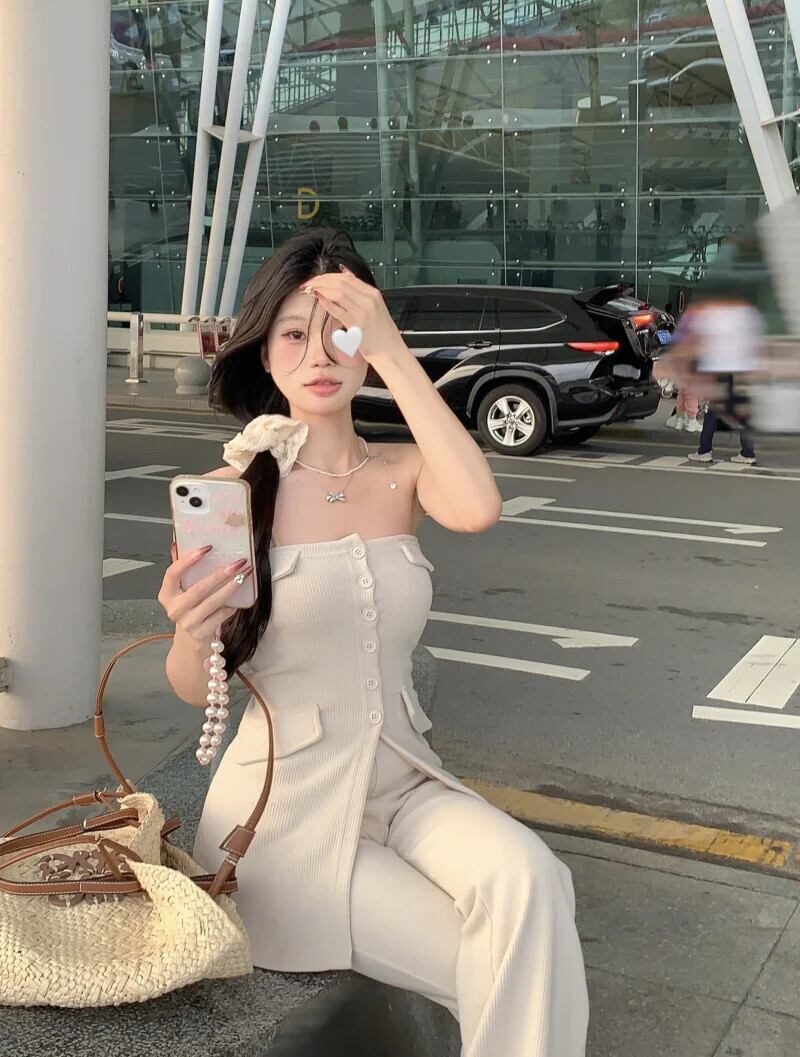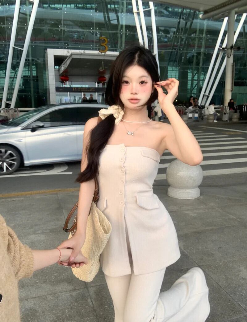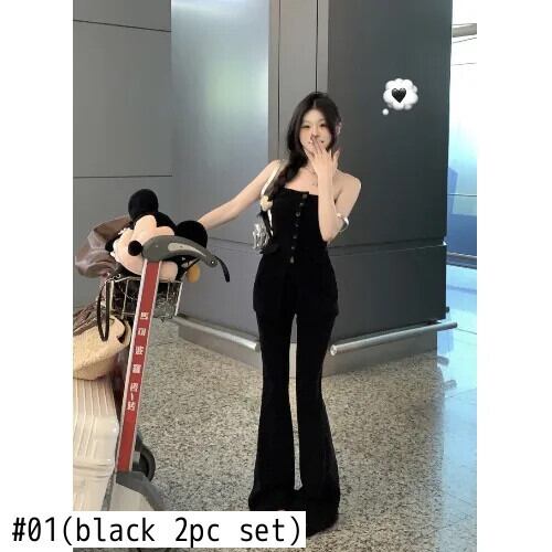 甘いホットガールニットスーツ春純粋セクシーストラップレストップスリムフィットフレアパンツツーピースセット レッド 大人ガーリー スウィート キュート カジュアル スプリング 春物 ピュア