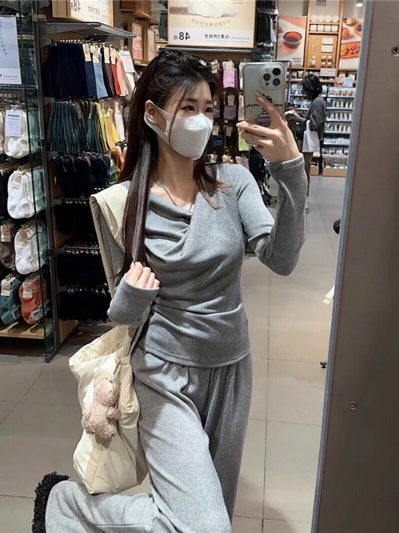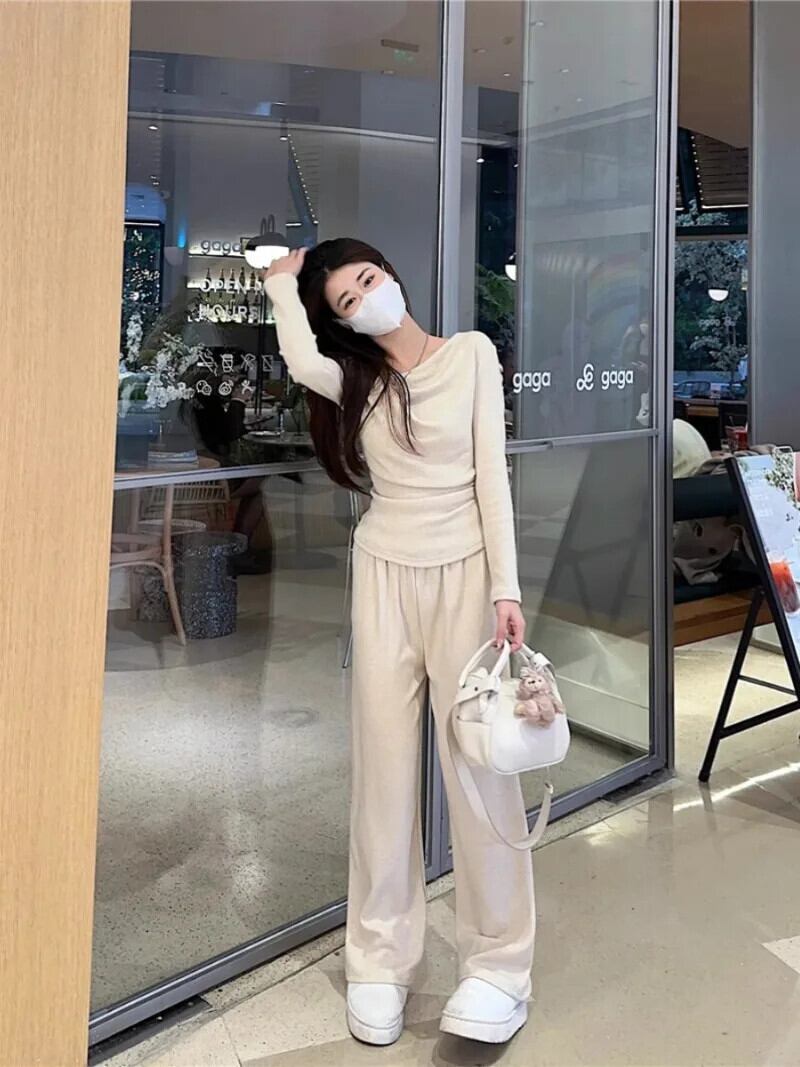 Sweet Hot Girl スポーツスーツ レディース 春スイングカラー 長袖トップ ウエスト ワイドレッグパンツ 2点セット ロング 大人ガーリー スウィート キュート カジュアル スプリング 春物 ワイドパンツ