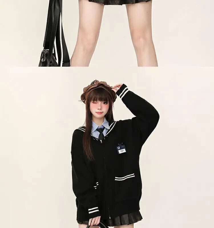 ese スタイルニットカーディガン春セーラー襟ルーズ長袖セータージャケット ロング スプリング 春物