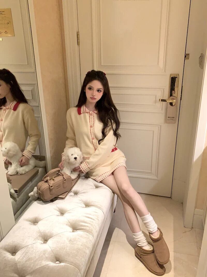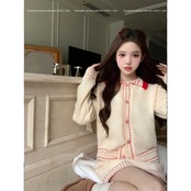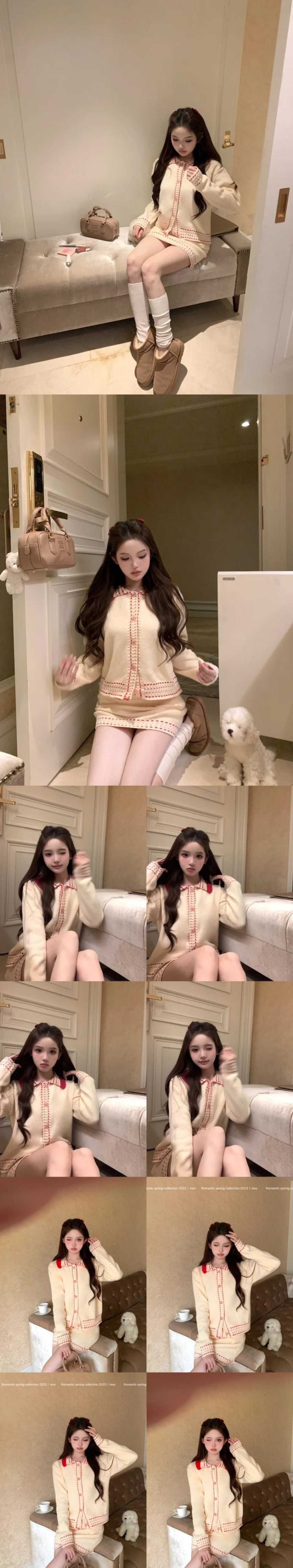 スイートホットガールクリスマススーツ秋と冬ターンダウンカラーニットジャケットヒップラップスカートツーピースセット 大人ガーリー スウィート キュート カジュアル オータム 秋物 ウィンター 冬物