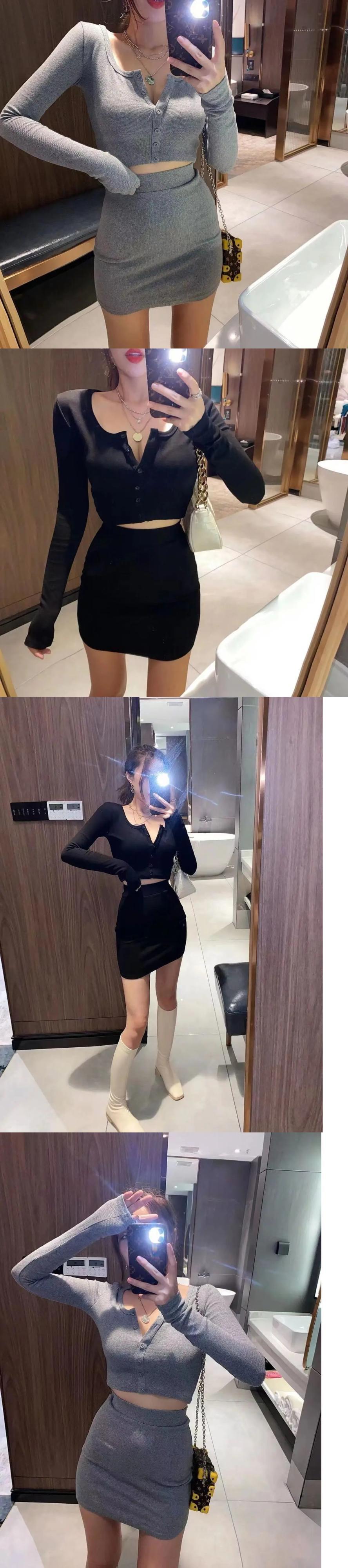 甘いホットガールスーツ春スリムフィット V ネック長袖 Tシャツウエストミニスカート 2 点セット ロング 大人ガーリー スウィート キュート カジュアル スプリング 春物 Vネック
