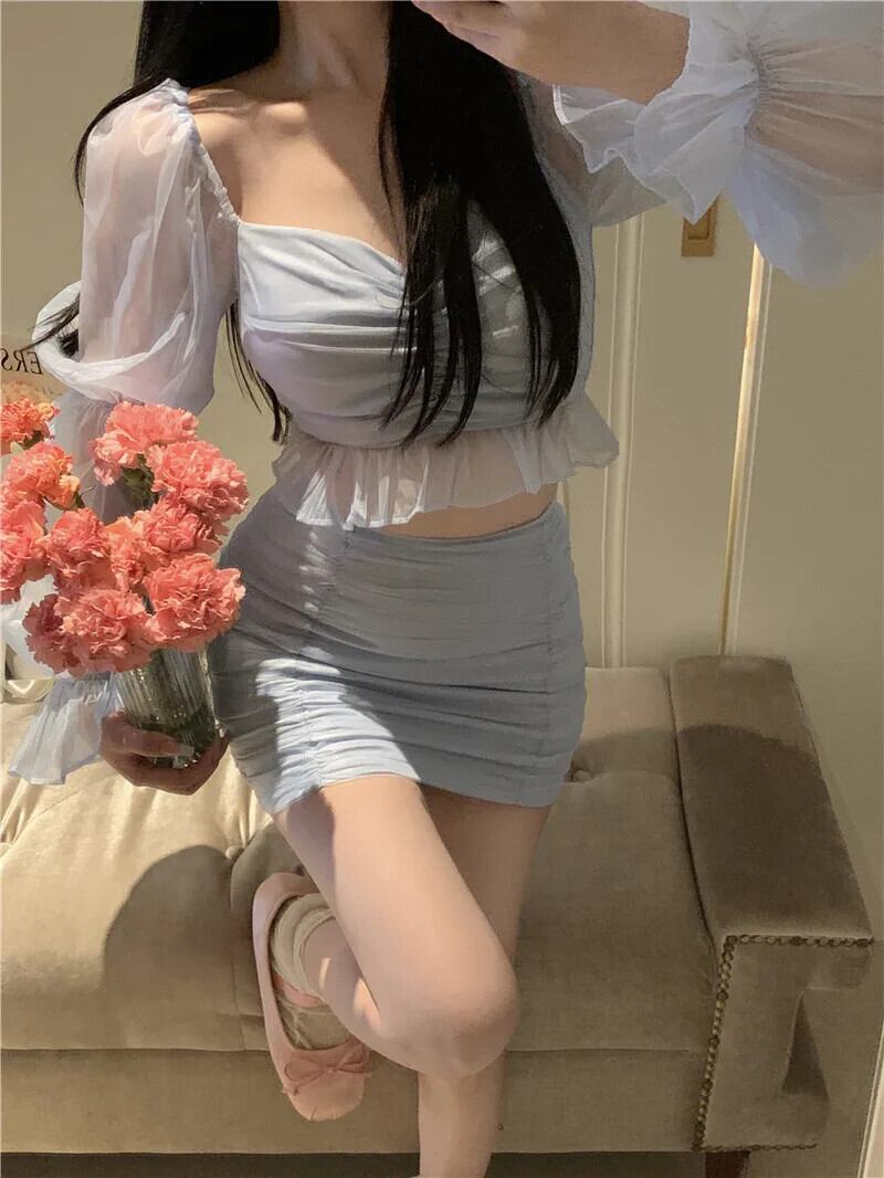 純粋セクシーホットガールスーツ夏フレア袖オフショルダーショートトップヒップラップミニスカートツーピースセット レッド サマー 夏物