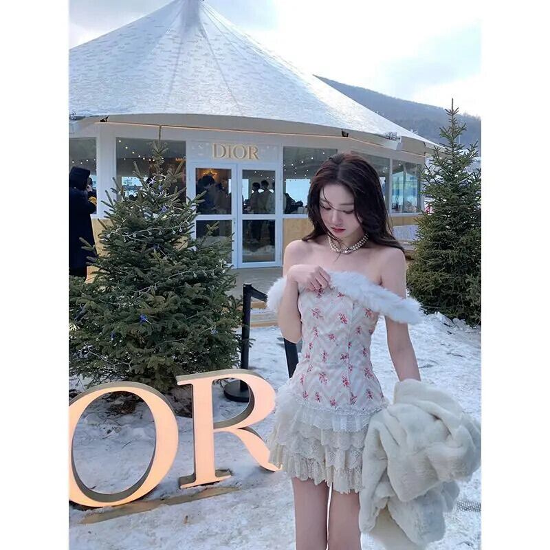 甘いホットガールスーツ夏豪華オフショルダーストラップレストップ A ラインレーススカート 2 点セット 大人ガーリー スウィート キュート カジュアル サマー 夏物 Aライン