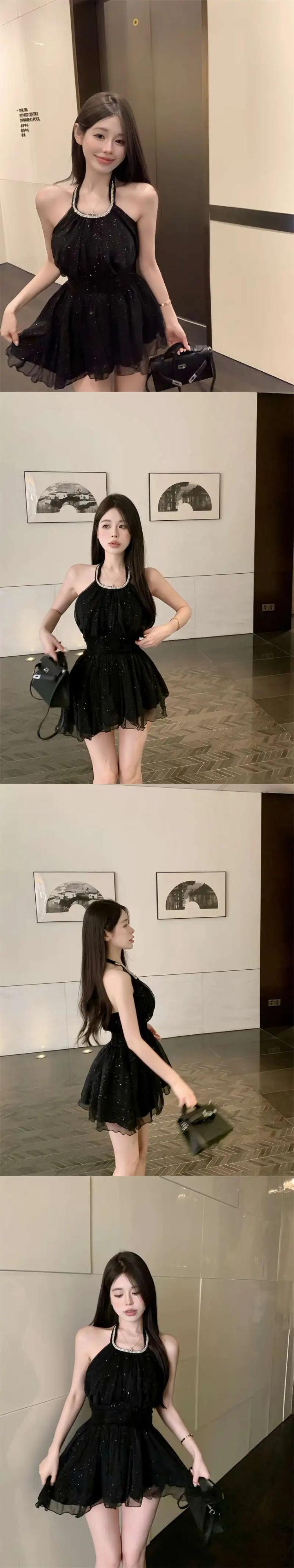 Sweet Girl ピンク レースアップ ネックマウント ストラップ ドレス レディース 夏 スリム フィット ノースリーブ A ライン ショート ドレス 大人ガーリー スウィート キュート カジュアル サマー 夏物 Aライン