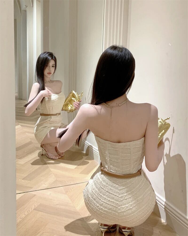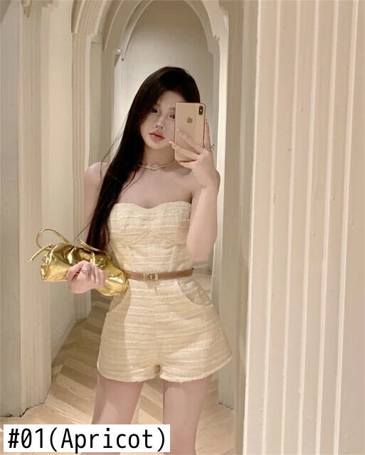甘いホットガールストラップレスジャンプスーツ夏セクシールーズウエストワイドレッグショートパンツ 大人ガーリー スウィート キュート カジュアル サマー 夏物 ワイドパンツ