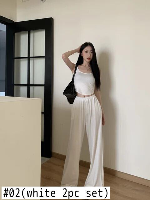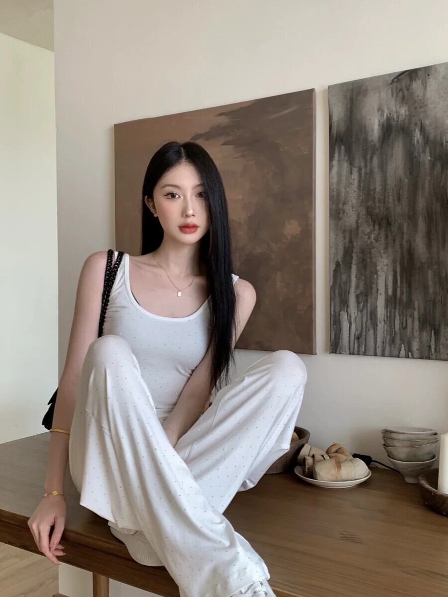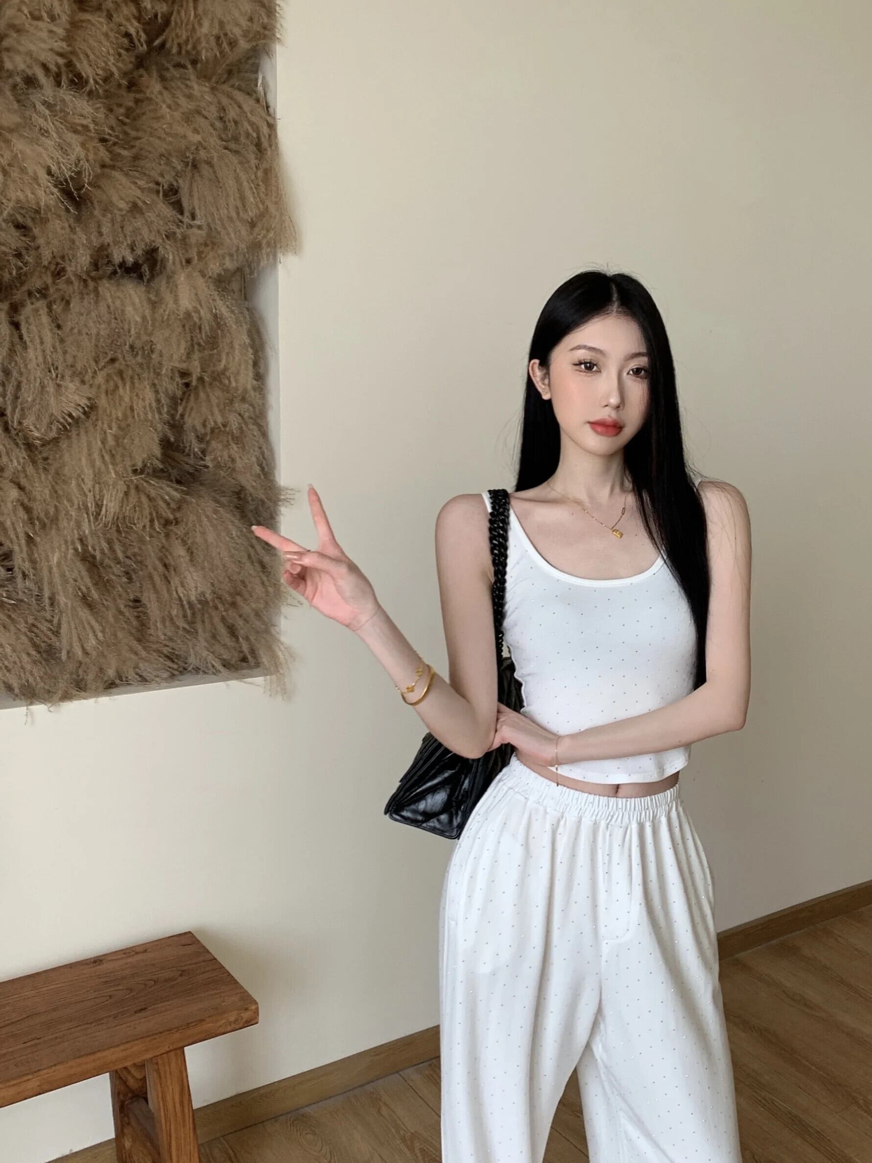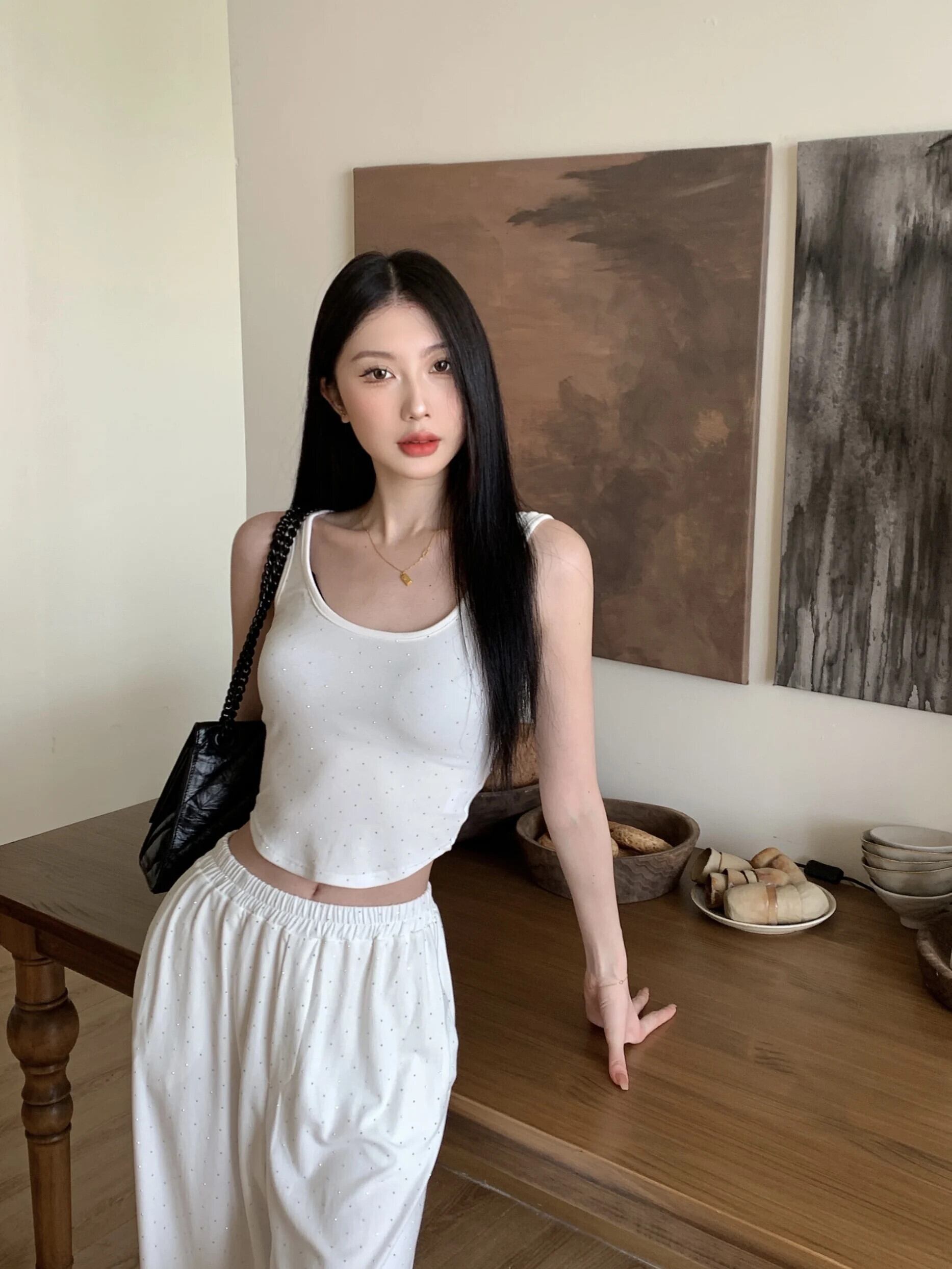 甘いホットガールスーツ夏セクシーラインストーンストラップベストウエストストレートレッグワイドレッグパンツ 2 点セット 大人ガーリー スウィート キュート カジュアル サマー 夏物 ワイドパンツ