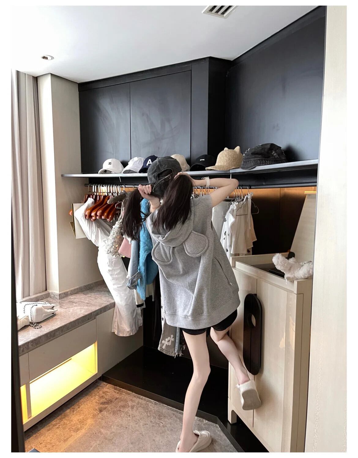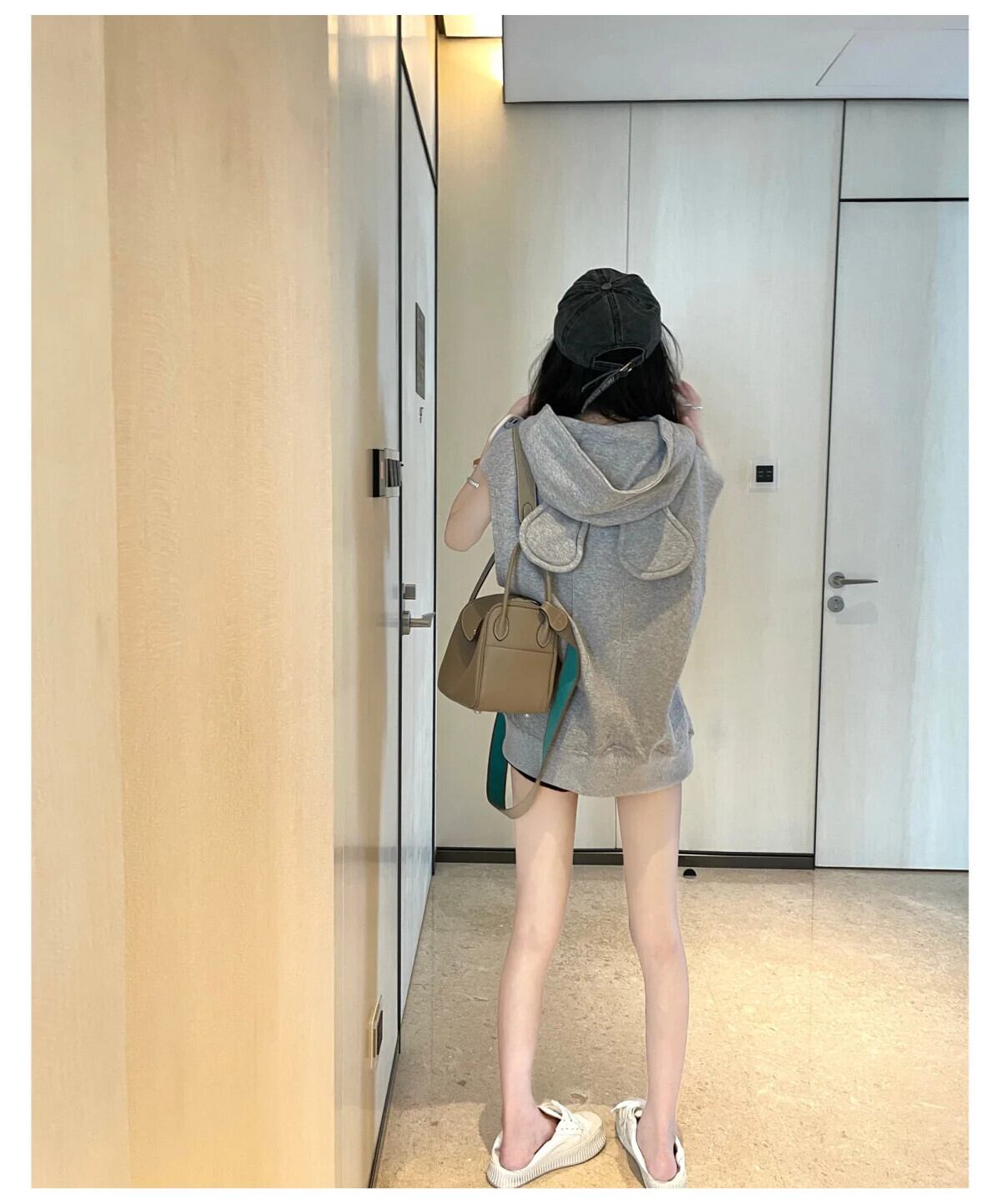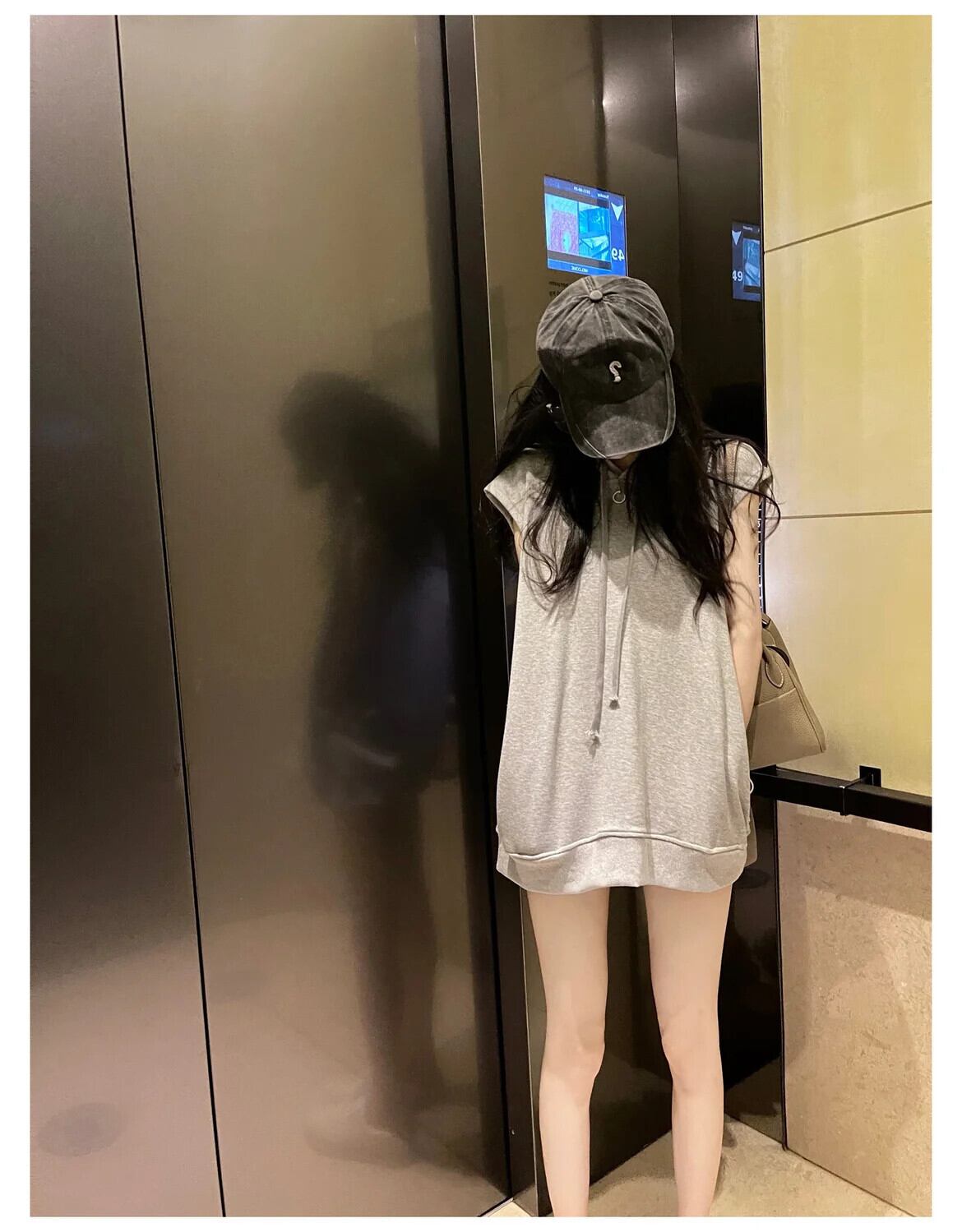 甘いホットガールフード付きトレーナー夏ノースリーブルーズミッドレングスプルオーバートップ 大人ガーリー スウィート キュート カジュアル サマー 夏物