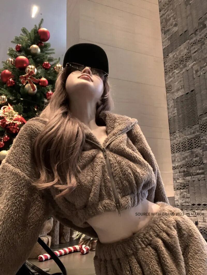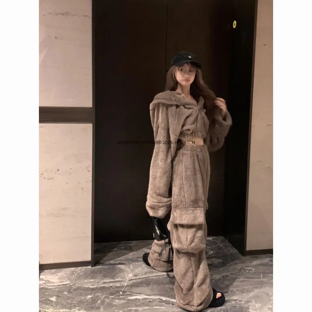 甘いホットガールスーツ冬豪華フード付きジッパー付きショートジャケットワイドレッグパンツツーピースセット レッド 大人ガーリー スウィート キュート カジュアル ウィンター 冬物 ワイドパンツ