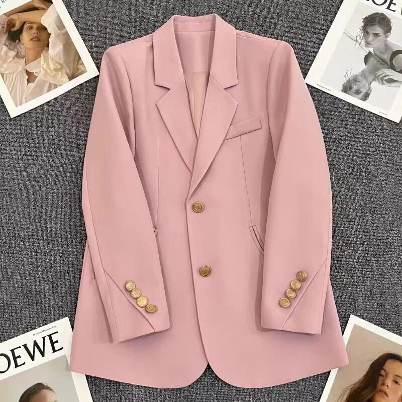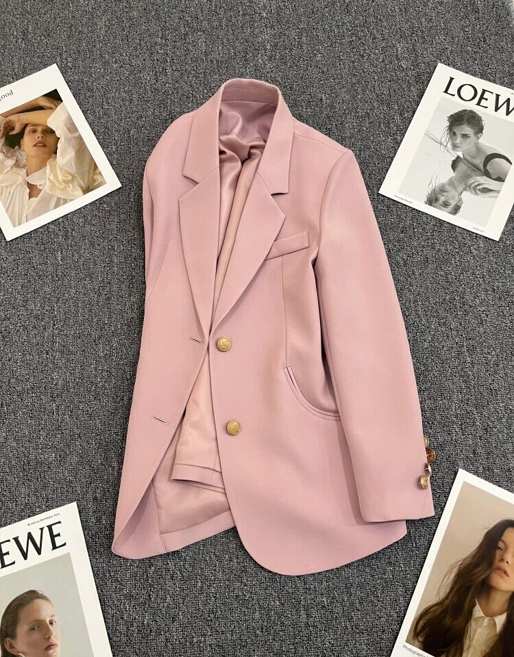 オフィスレディ ピンク テーラード コート レディース 春 ターンダウンカラー ルーズ ミドル丈 ジャケット レッド スプリング 春物 会社 学校 通勤や通学にも