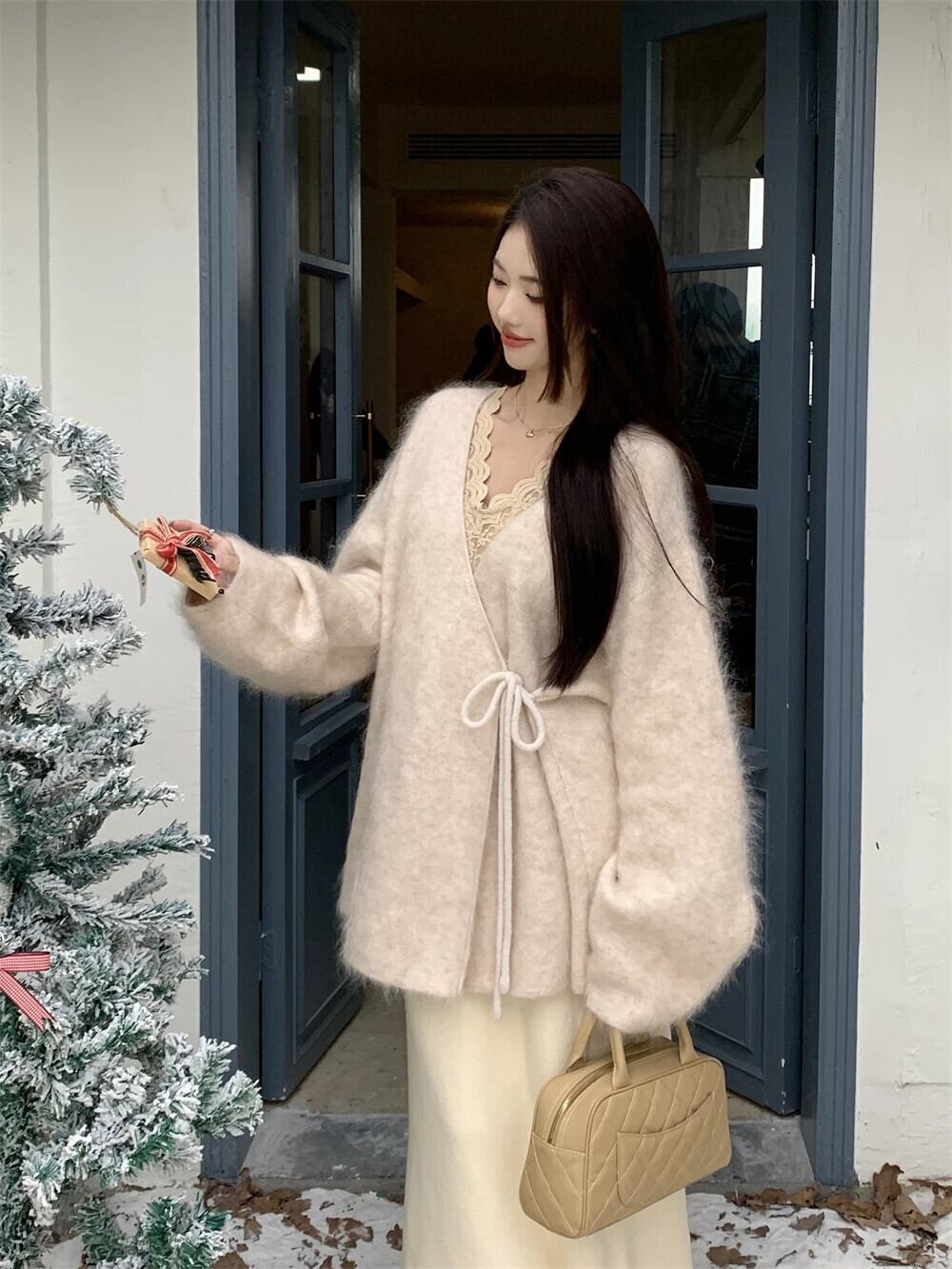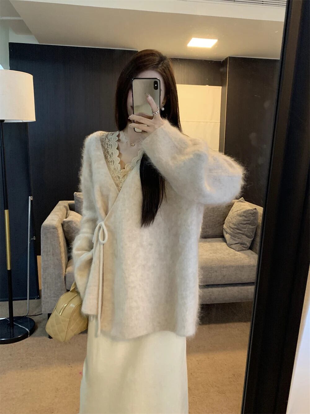 スイートガールスーツ冬 V ネックセータージャケットウエストストレートチューブロングスカート 2 点セット 大人ガーリー スウィート キュート カジュアル ウィンター 冬物 Vネック