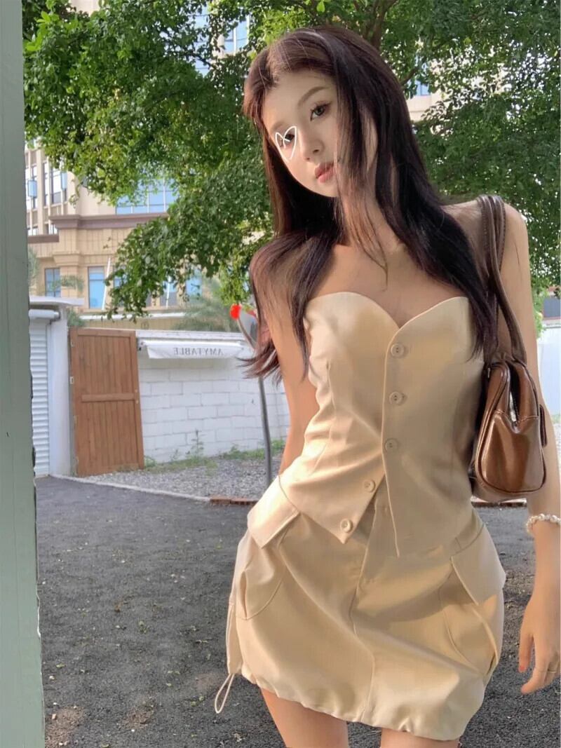 甘いホットガールスーツ夏セクシーオフショルダーストラップレスタンクトップウエストミニスカートツーピースセット 大人ガーリー スウィート キュート カジュアル サマー 夏物