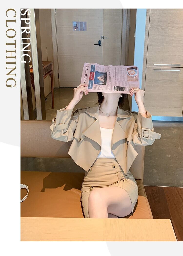 甘いホットガールスーツ春ショートウインドブレーカーダブルブレストウエストミニスカート 2 点セット 大人ガーリー スウィート キュート カジュアル スプリング 春物