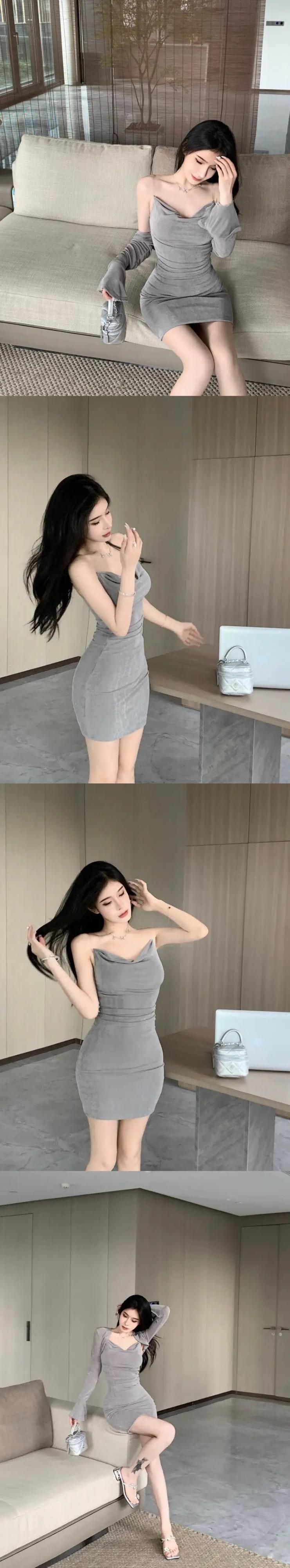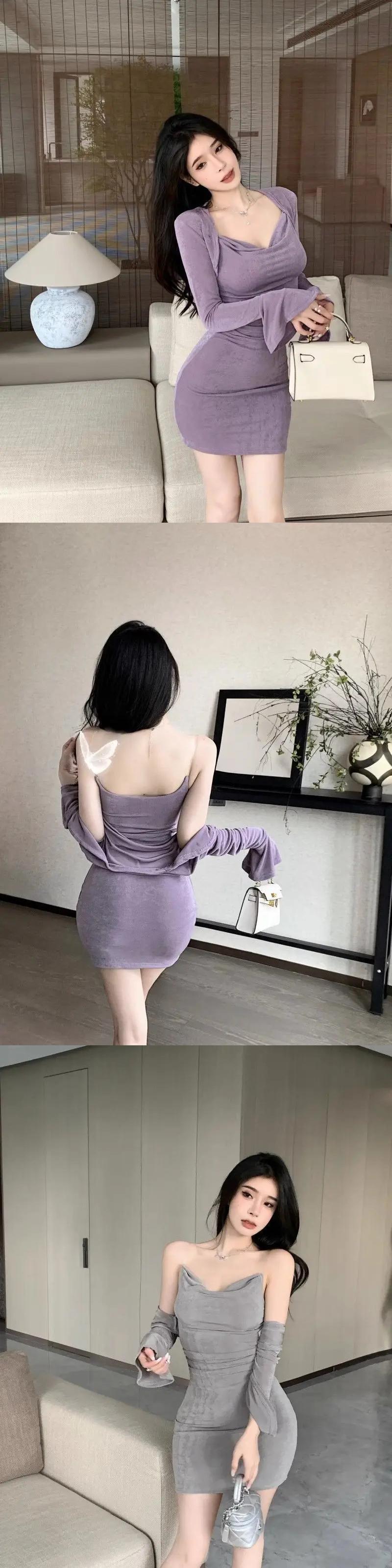純粋セクシーホットガールスーツ春グレースリムフィットストラップドレス長袖カーディガンツーピースセット ロング スプリング 春物