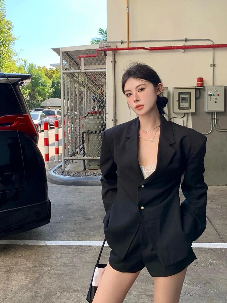 スイート ホット ガール スーツ レディース 春夏 パール バックル ショルダー パッド ジャケット ウエスト ワイドレッグ ショーツ 2 点セット 大人ガーリー スウィート キュート カジュアル スプリング 春物 サマー 夏物 ブルマー ワイドパンツ 真珠