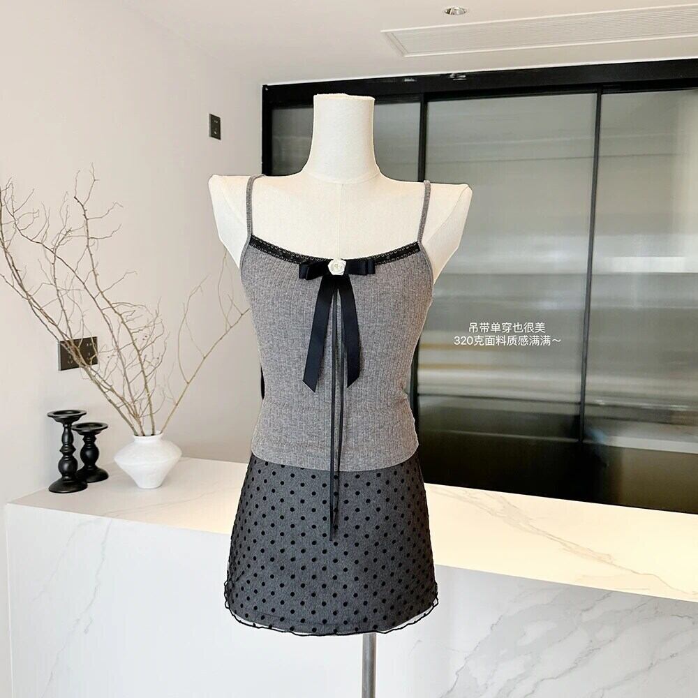 甘いホットガールスーツ春弓ストラップ長袖ニットカーディガンウエストミニスカート 3 点セット ロング リボン 大人ガーリー スウィート キュート カジュアル スプリング 春物