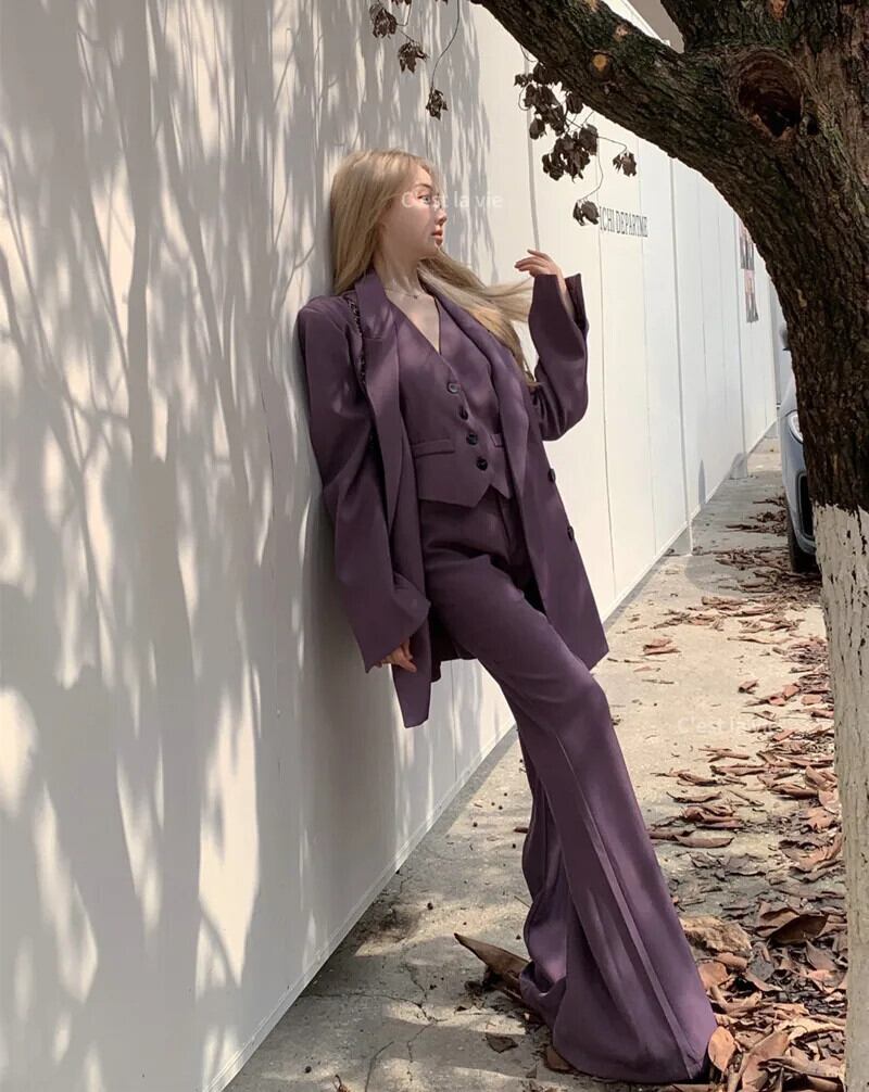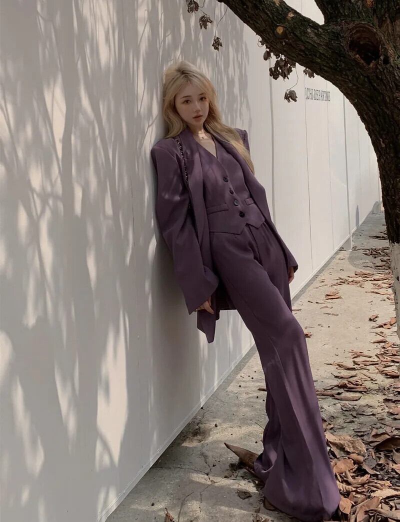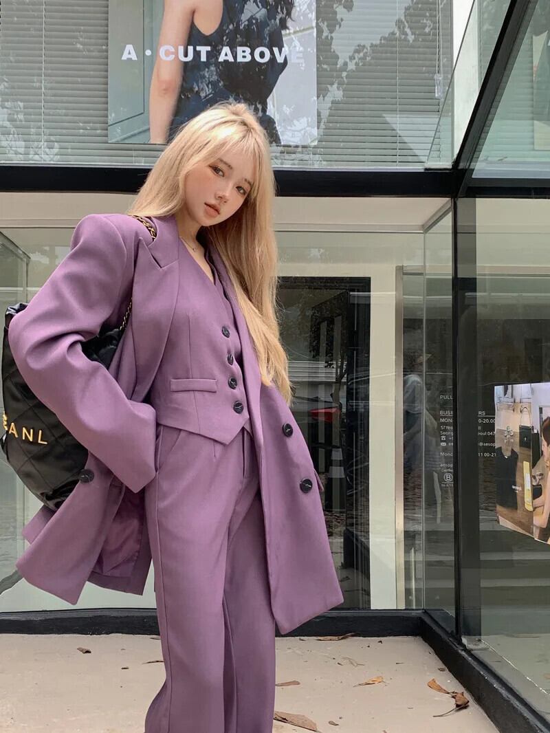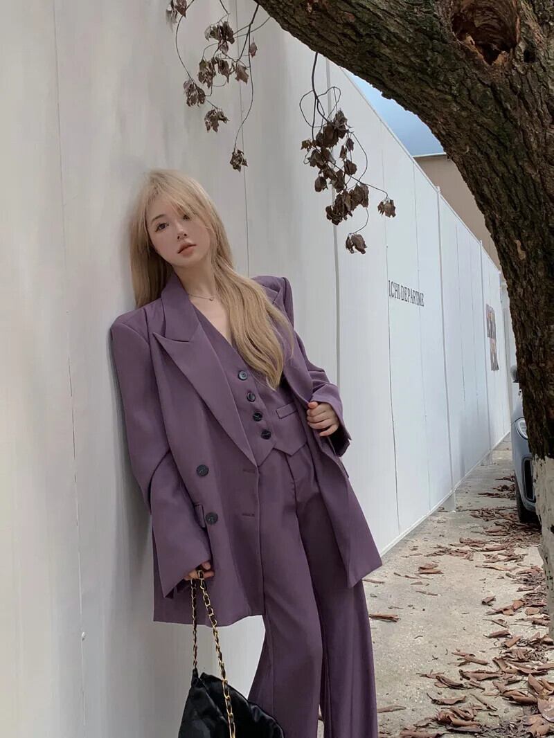 スイートホットガールスーツ春テーラードコート V ネックベストストレートレッグパンツ 3 点セット レッド 大人ガーリー スウィート キュート カジュアル スプリング 春物 Vネック