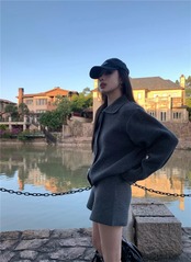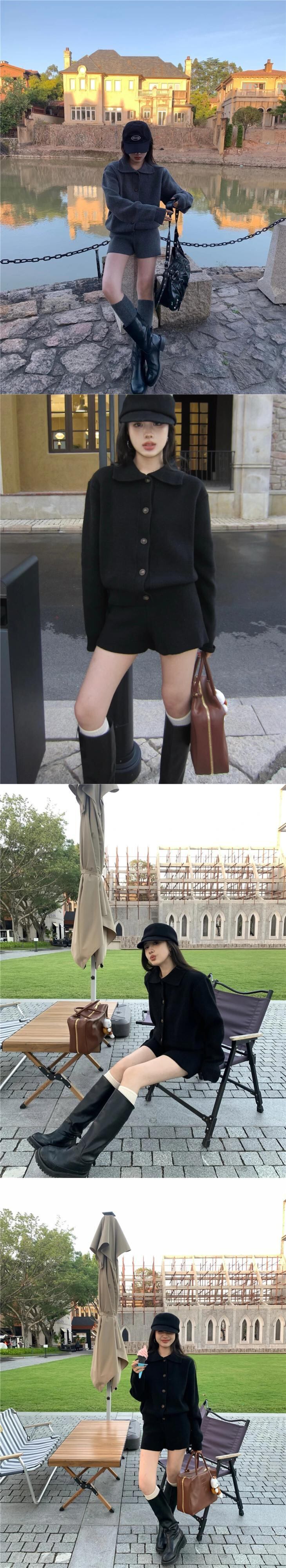 スイートホットガールスーツ レディース 秋冬セーター ピーターパンカラー ニットカーディガン ウエストショーツ 2点セット 大人ガーリー スウィート キュート カジュアル オータム 秋物 ウィンター 冬物 ブルマー
