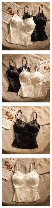 フレンチスイートホットガールプリントサテンキャミソールベスト夏胸パッドとVネックスリムフィットトップ 大人ガーリー スウィート キュート カジュアル サマー 夏物