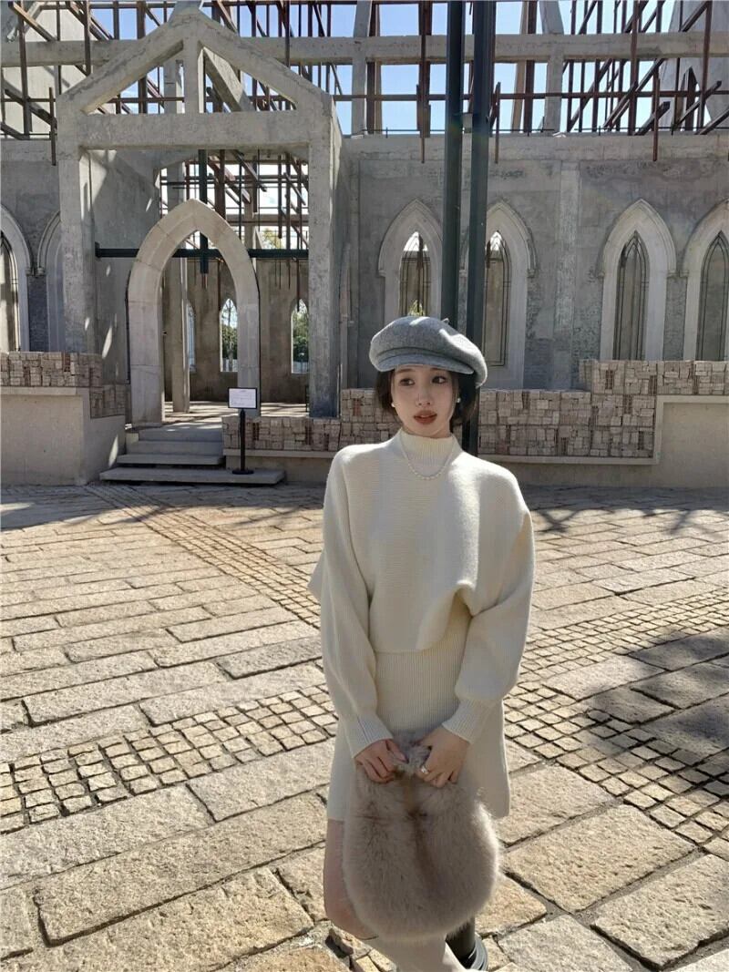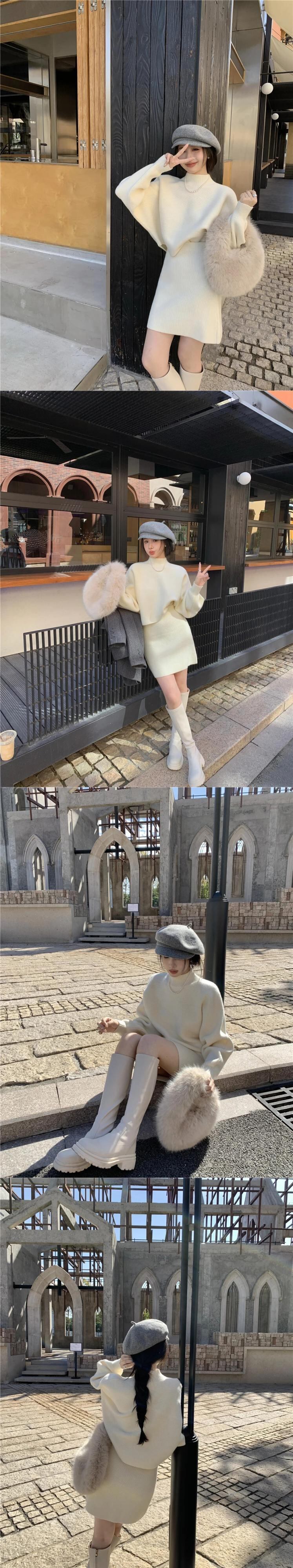 スイートホットガールスーツ秋/冬ハーフネックセーターウエストミニスカートツーピースセット 大人ガーリー スウィート キュート カジュアル オータム 秋物 ウィンター 冬物