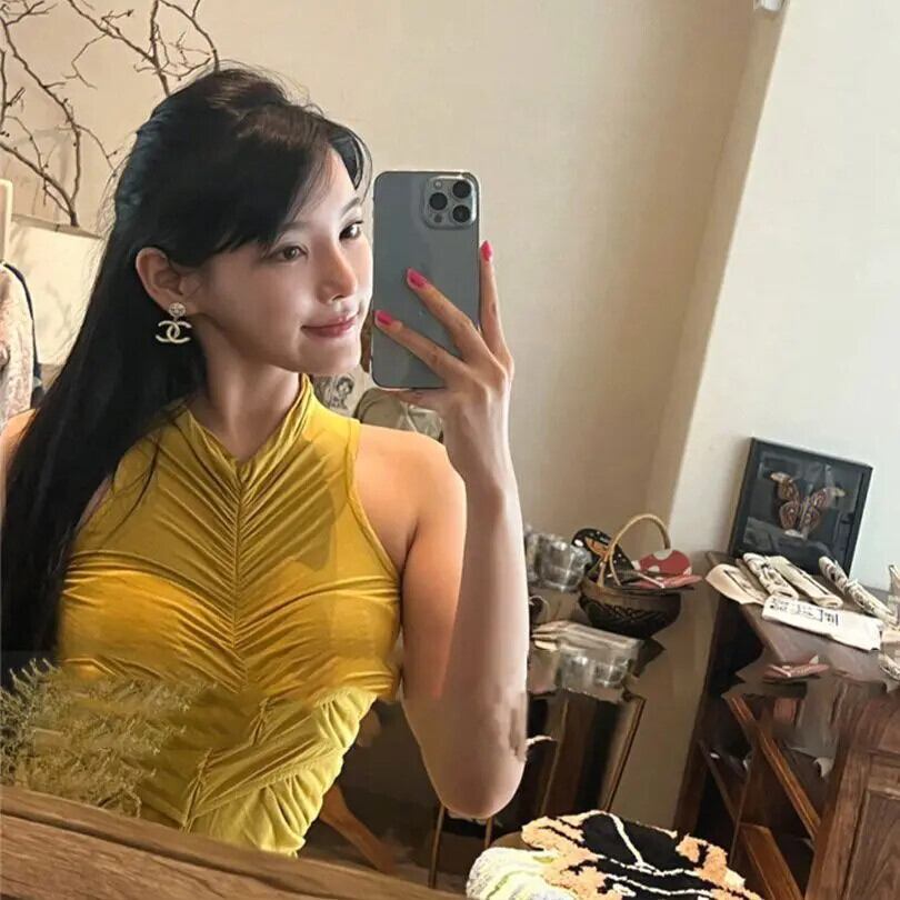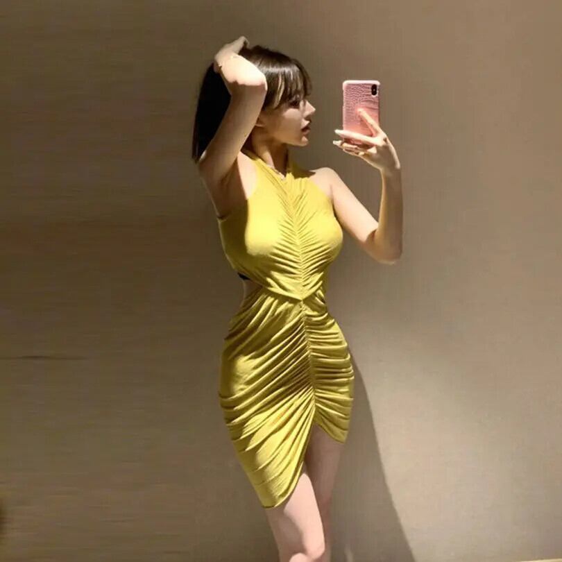甘いホットガールプリーツドレス春 O ネックスリムフィットノースリーブウエストラップお尻ドレス 大人ガーリー スウィート キュート カジュアル スプリング 春物 Oネック