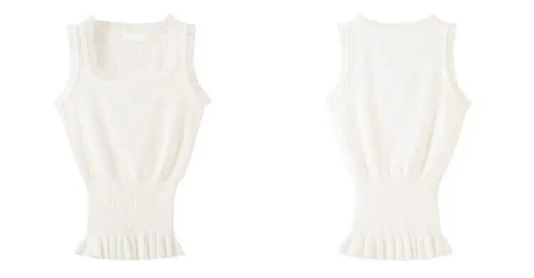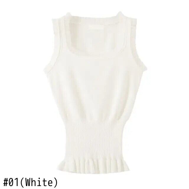 フレンチスイートホットガールホワイトレース食用木菌ニットタンクトップOネックノースリーブスリムトップ 大人ガーリー スウィート キュート カジュアル